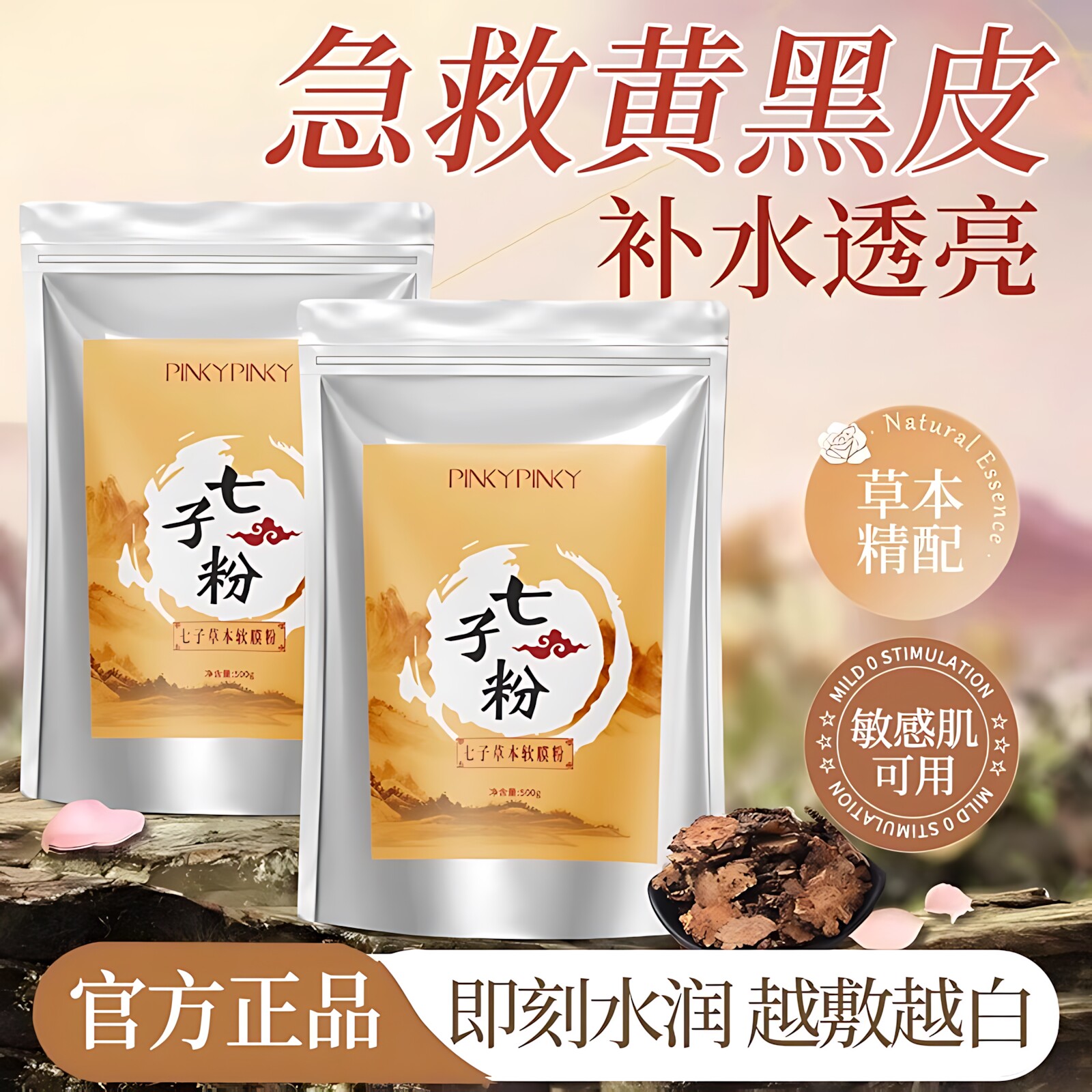 七子白七白散粉纯中药面膜粉补水非祛斑美白去黄气暗沉正品官方店