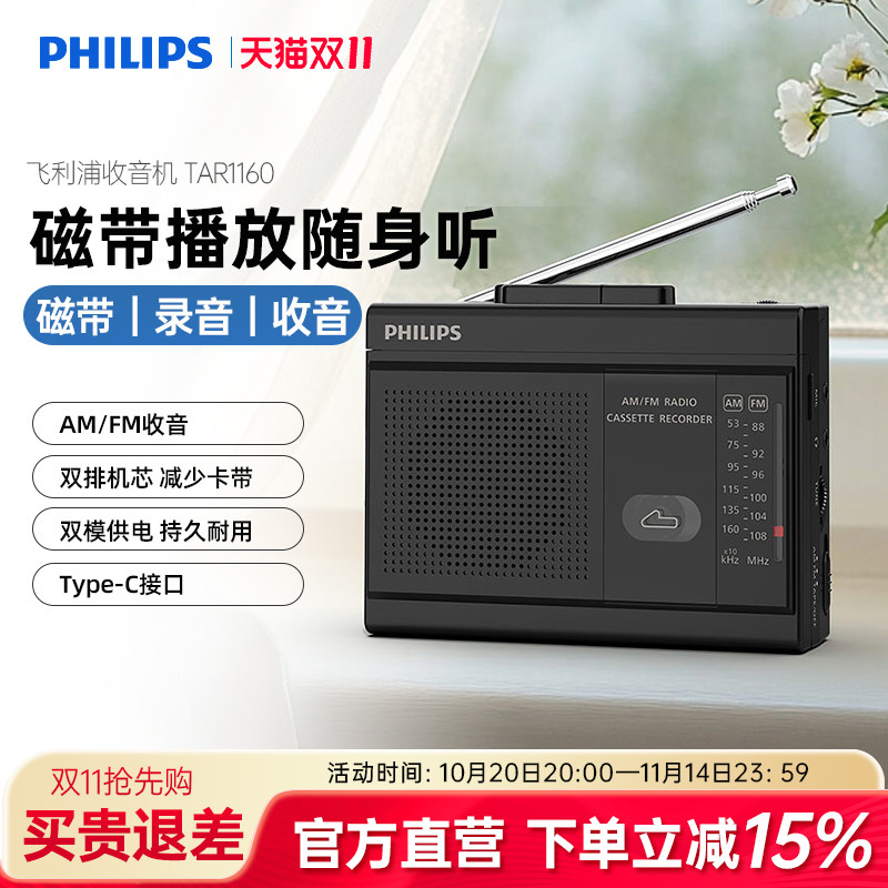 飞利浦TAR1160磁带播放机调频FM收音机四六级英语听力考试带录音