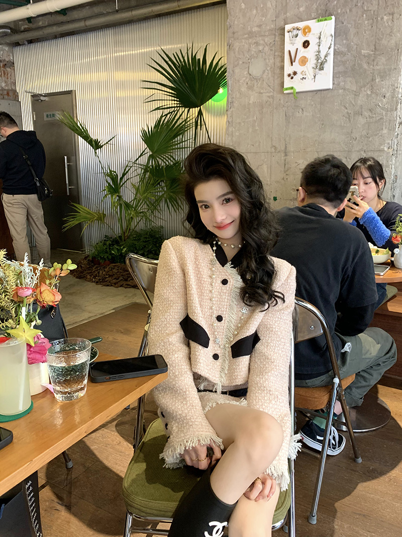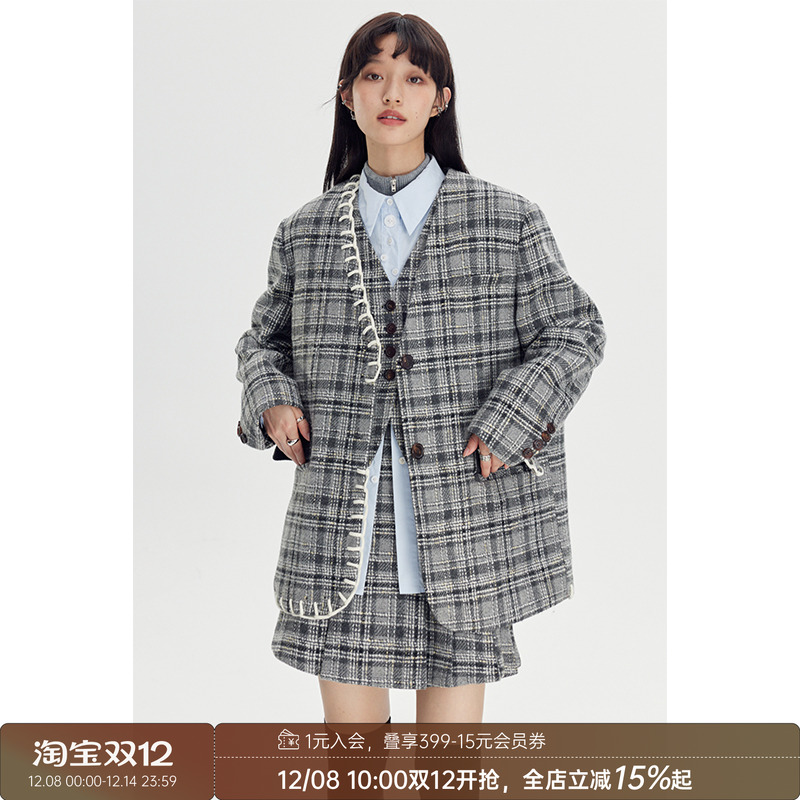 木子李的李高级感小香风套装长袖收腰外套呢子上衣半身裙两件套冬