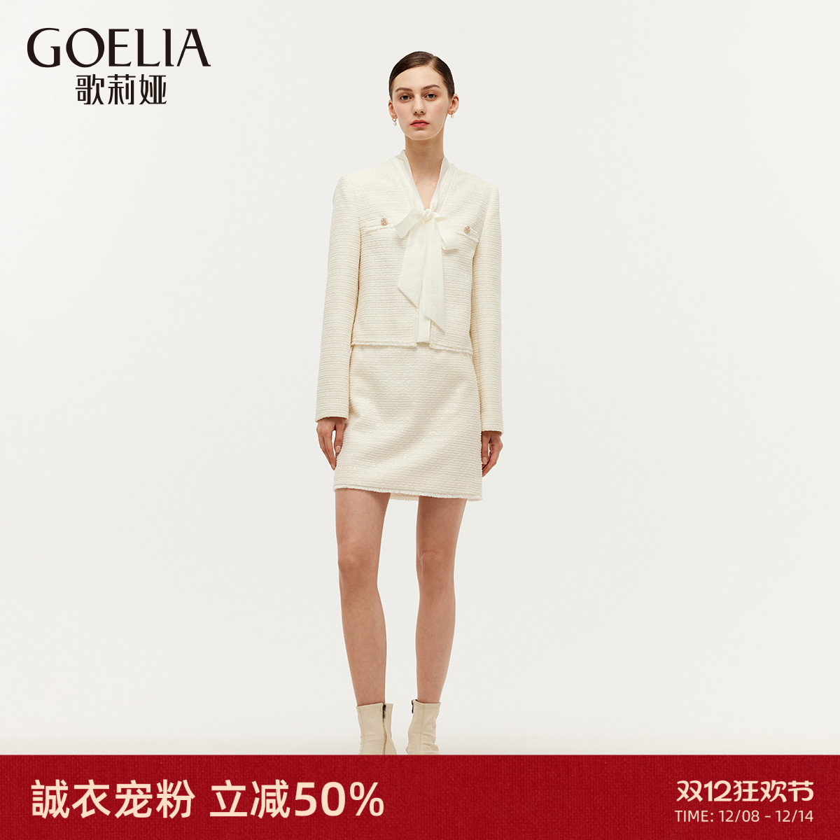 直降5折|歌莉娅小香风套装女秋冬高级感新年战袍一整套穿搭两件套