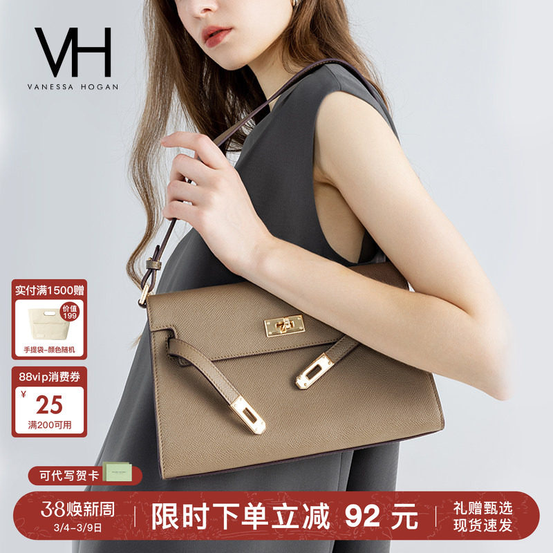 【38节妇女礼物】VH女包凯莉法棍包头层牛皮大容量轻奢真皮单肩包