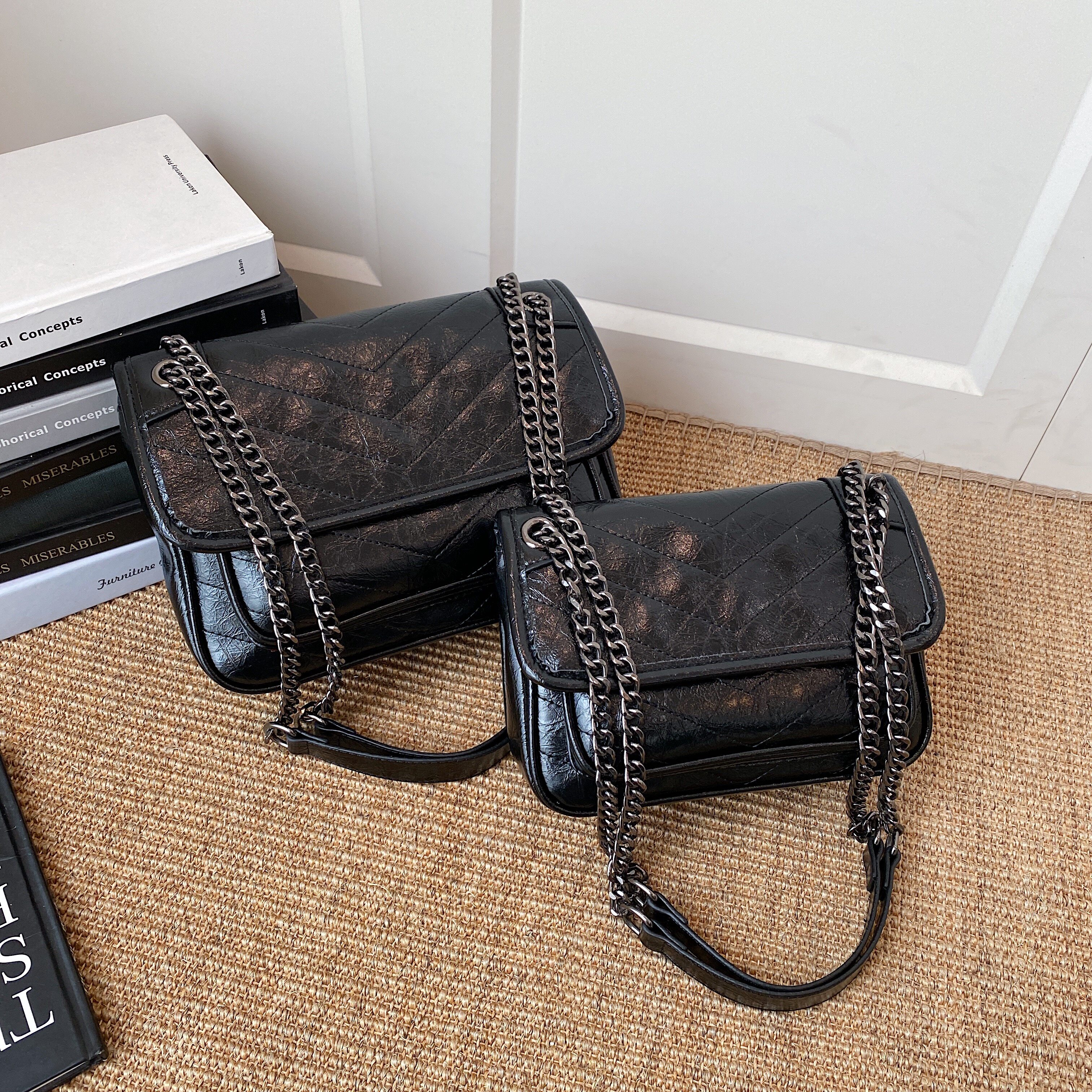 包包女2026新款黑色邮差链条包女高级感流浪包百搭单肩斜挎包女