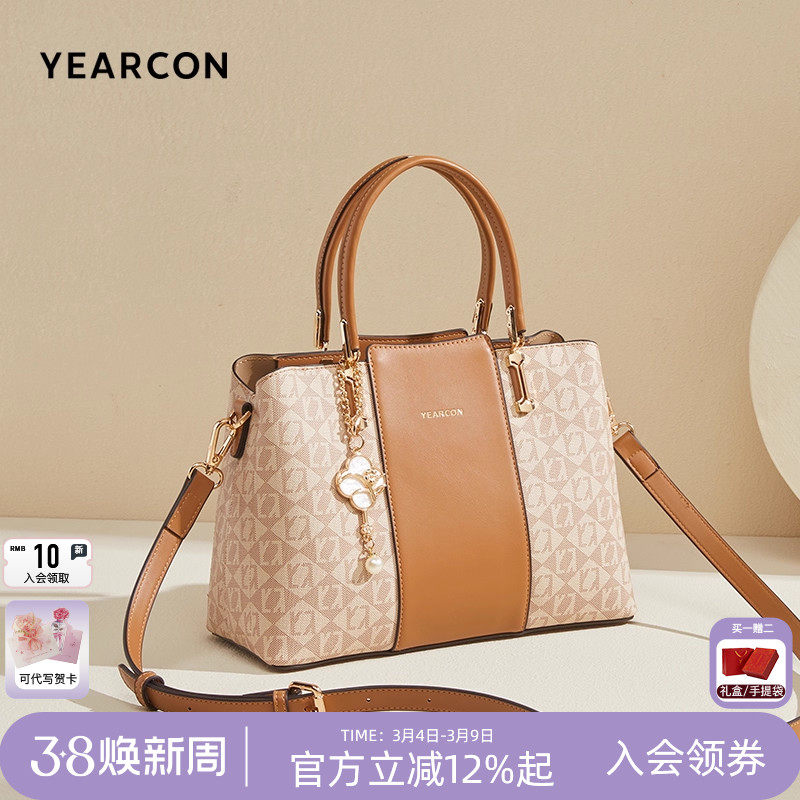 意尔康新款女包生日礼物手提包老花托特包妈妈包大容量斜挎包单肩