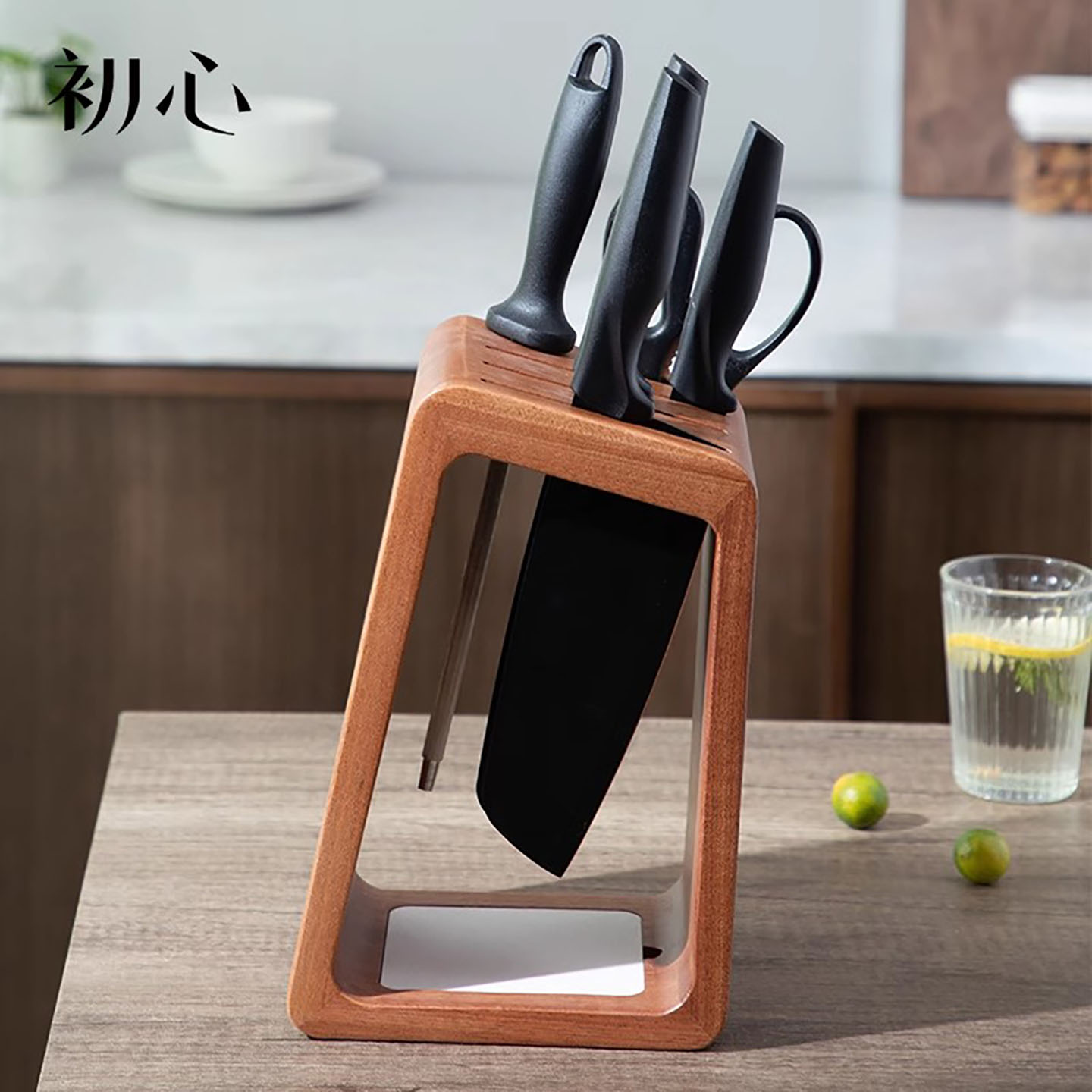 初心刀架置物架厨房刀具收纳架通风菜刀架实木防霉筷笼台面放刀座