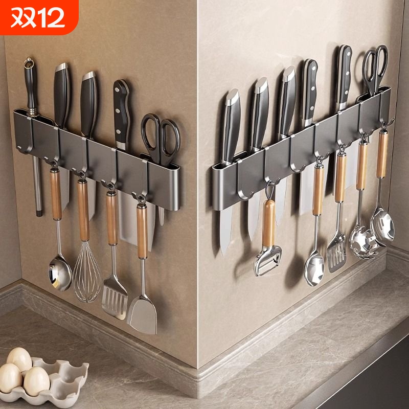 厨房刀架置物架 免打孔家用壁挂式刀具收纳架不锈钢刀座 挂钩挂杆