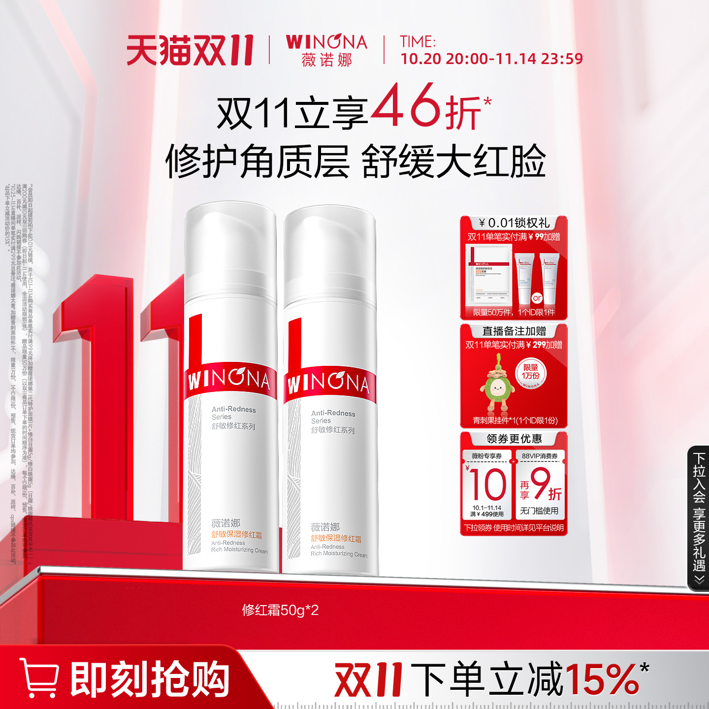 【双11狂欢购】薇诺娜舒敏保湿修红霜15g 敏感肌肤护肤品修护屏障