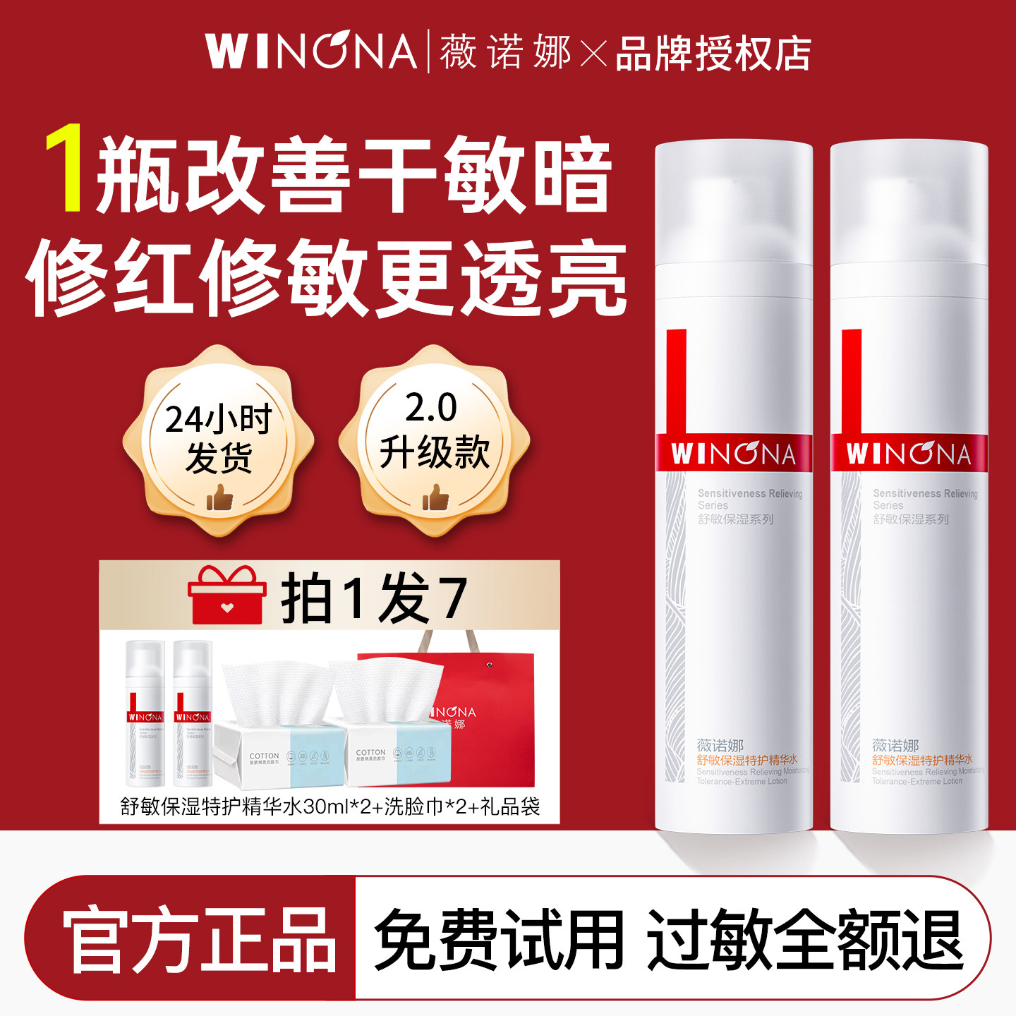 Winona/薇诺娜舒敏保湿特护精华水120ml/30ml二代润肤水敏感肌