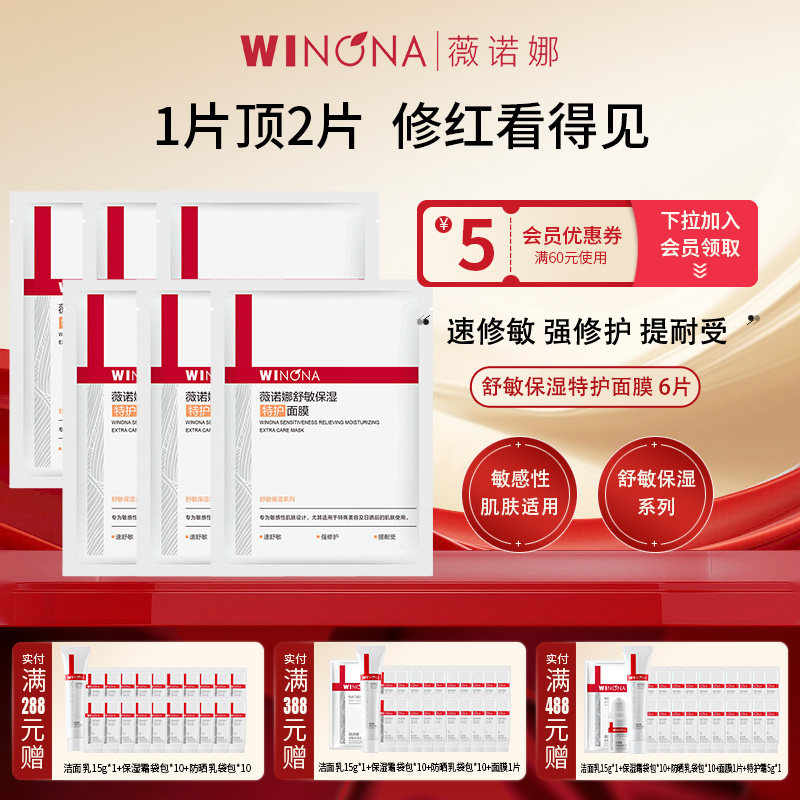 Winona/薇诺娜舒敏保湿特护面膜第二代敏感肌女补水保湿正品学生