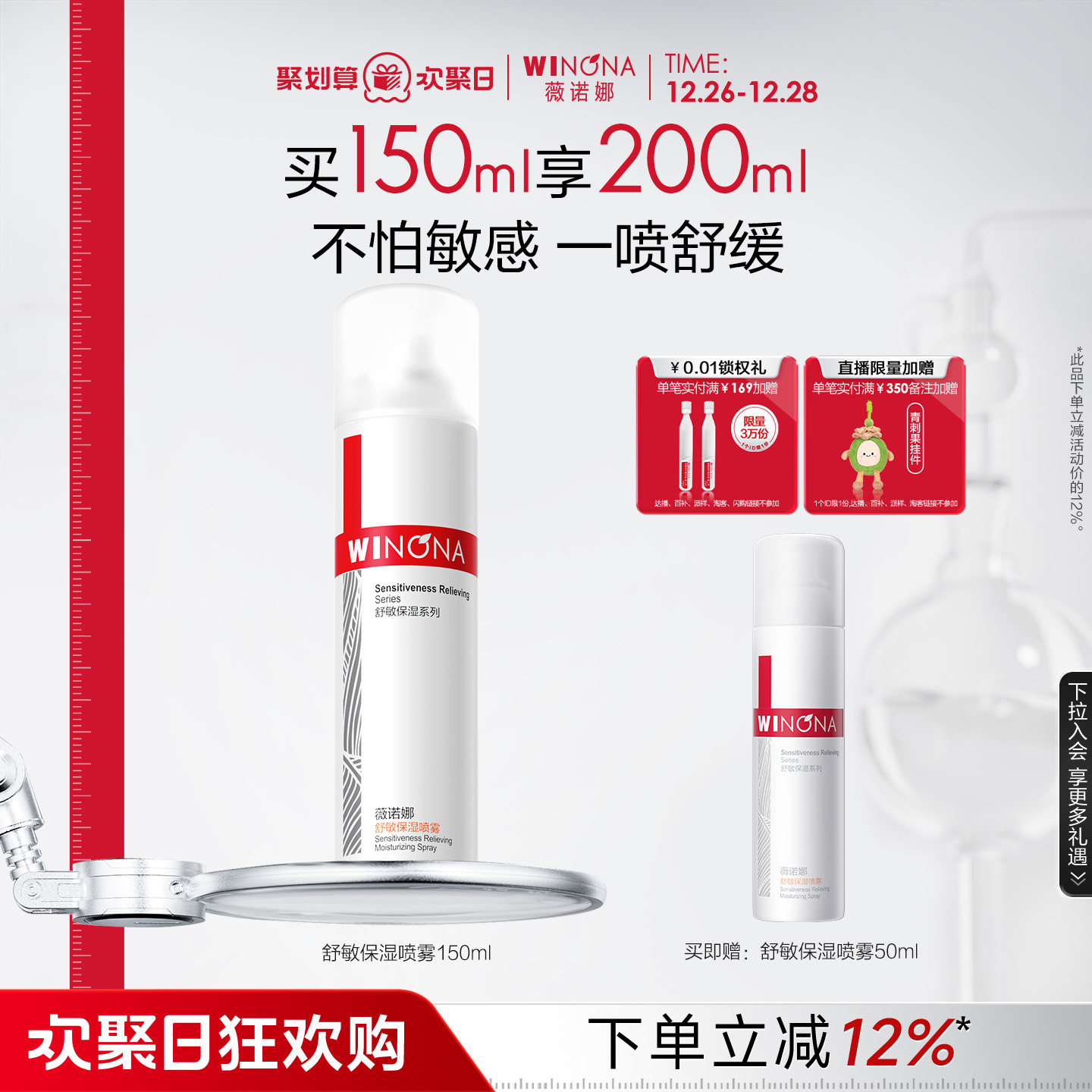 Winona/薇诺娜舒敏保湿喷雾150/50ml敏感肌一喷舒缓补水爽肤水