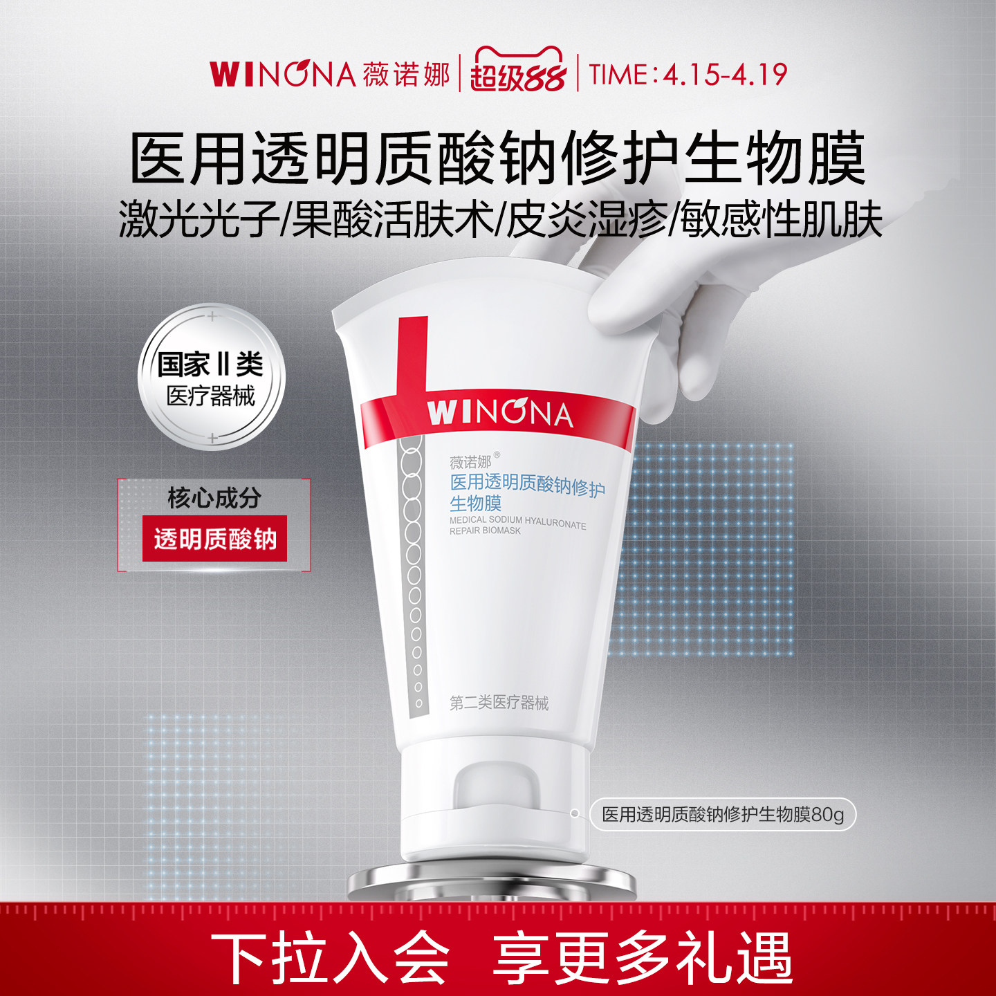 【新品】薇诺娜透明质酸钠修护生物膜敏感肌舒敏保湿补水修护面霜