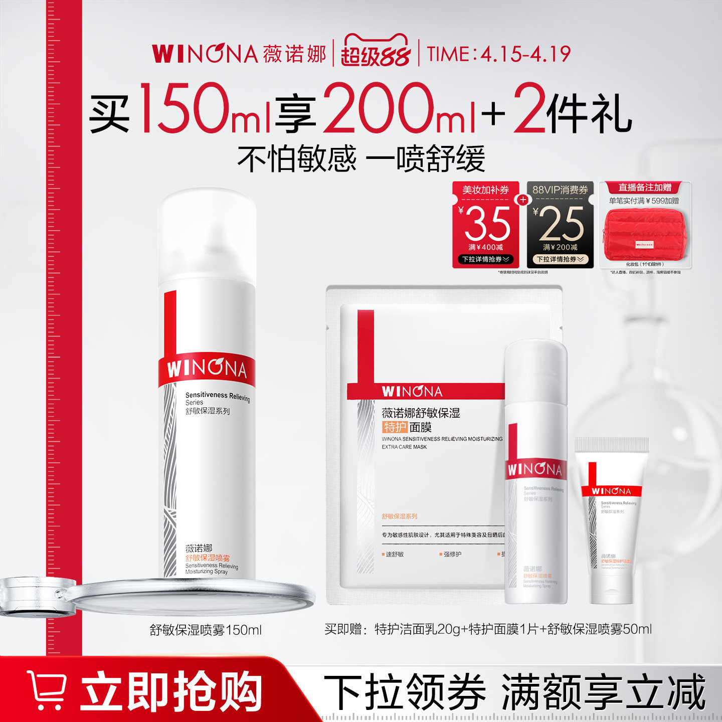 薇诺娜舒敏保湿喷雾150ml 敏感肌爽肤水补水锁水清爽舒缓屏障