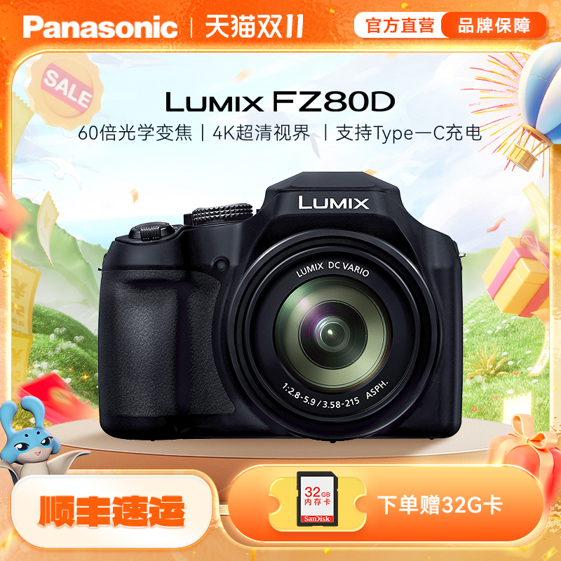 【旗舰店】松下 FZ80D 便携式长焦数码/桥式相机/4K视频