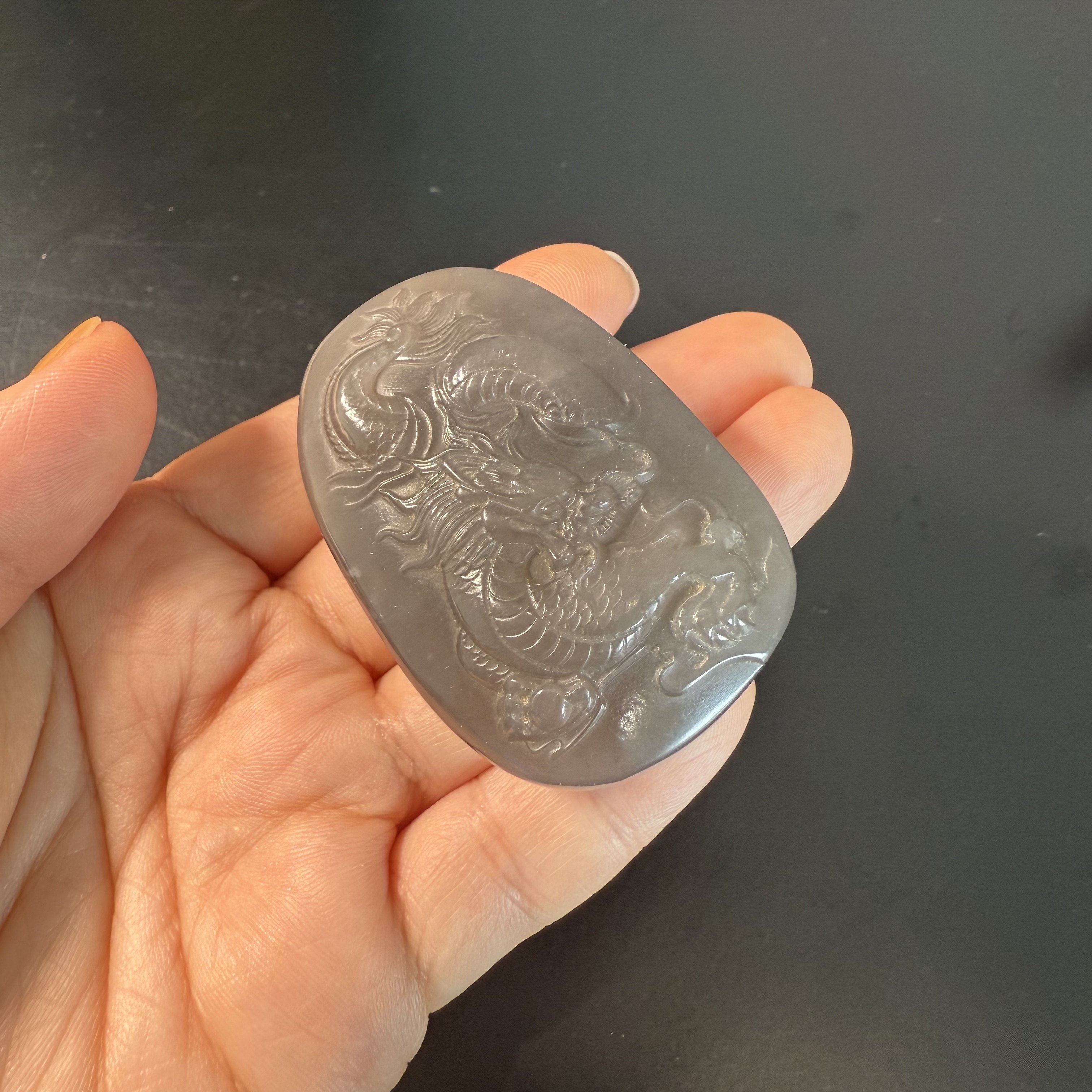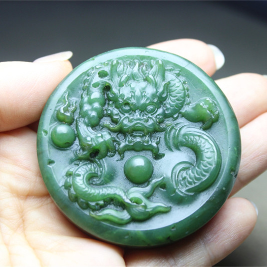 F720和田玉老玉佩碧玉古玩文玩龙牌满绿雕刻挂件手把件保真证书
