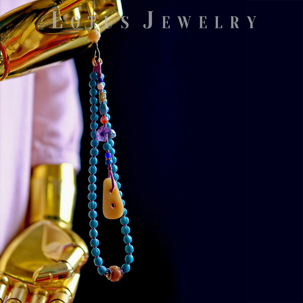 璎珞 三十八┊明清和田老玉双联玉璧清仿松石蓝老琉璃文玩手机链