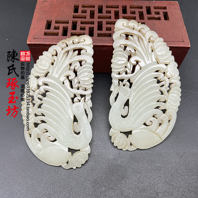 和田玉青白玉老玉对配凤凰玉佩玉吊坠头饰发饰镶嵌花雕对配玉坠子