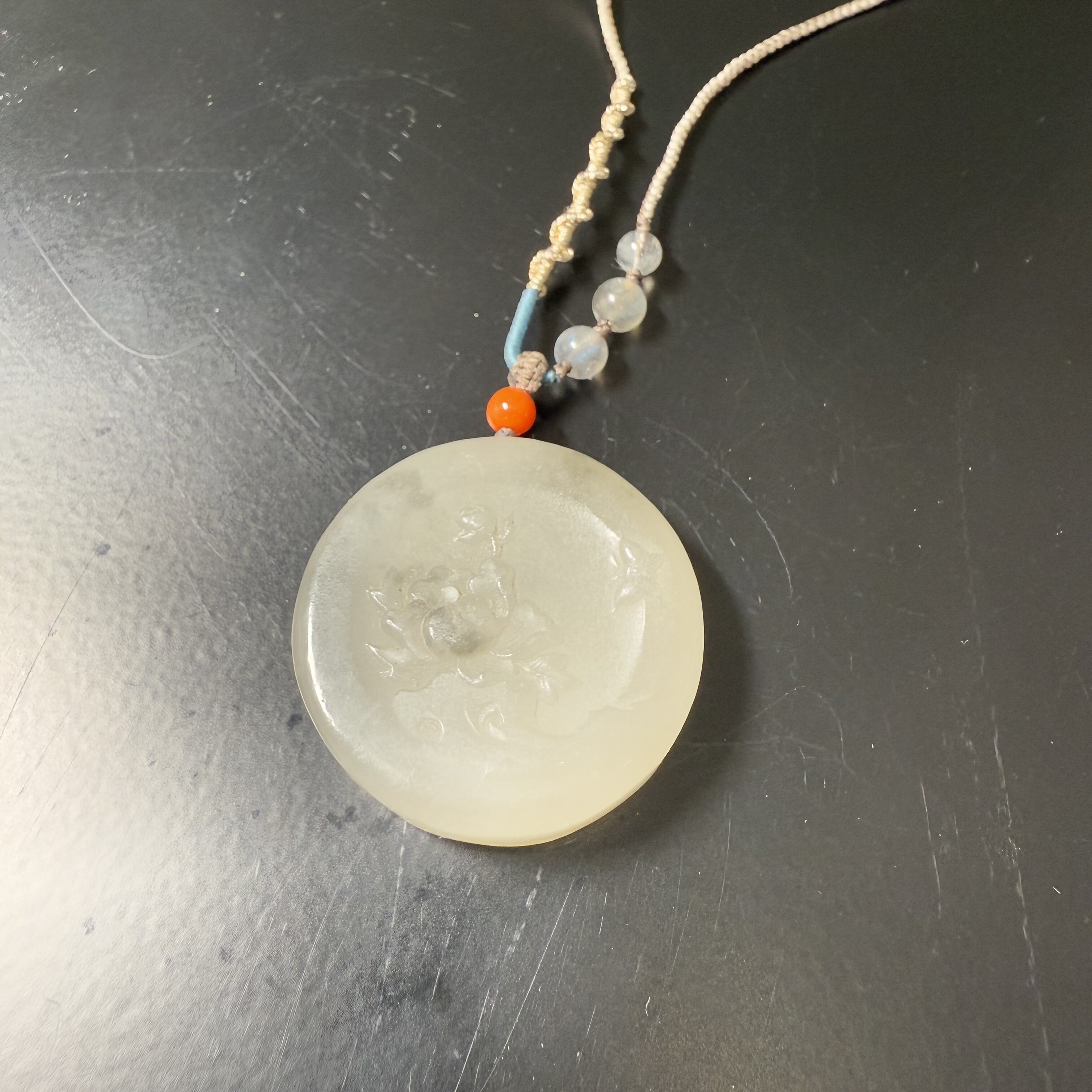 G63 和田玉 老和田老玉圆牌白玉雕刻莲花蝴蝶温润珍藏珍品 证书