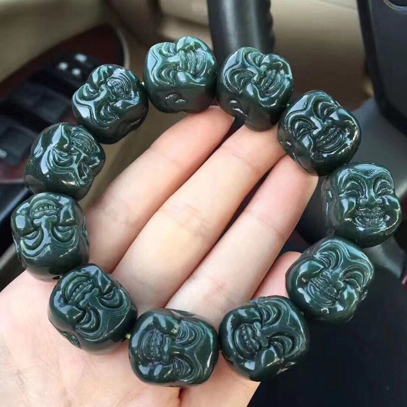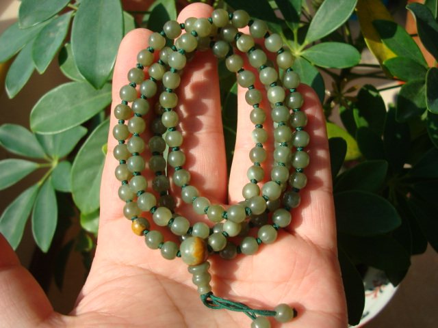 天然河磨玉108颗佛珠绿料项链老玉手串籽料岫岩玉和田玉透闪石玉