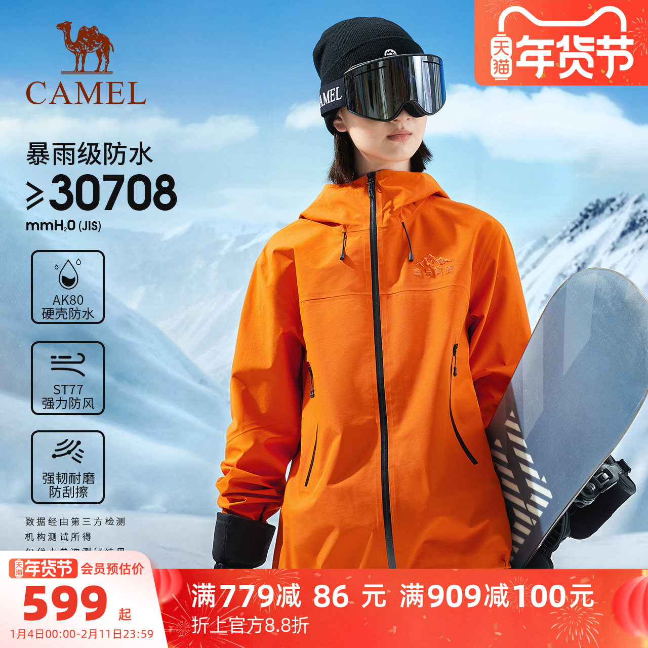 骆驼喜马拉雅户外硬壳滑雪服女冲锋衣防风雪休闲外套男保暖登山服