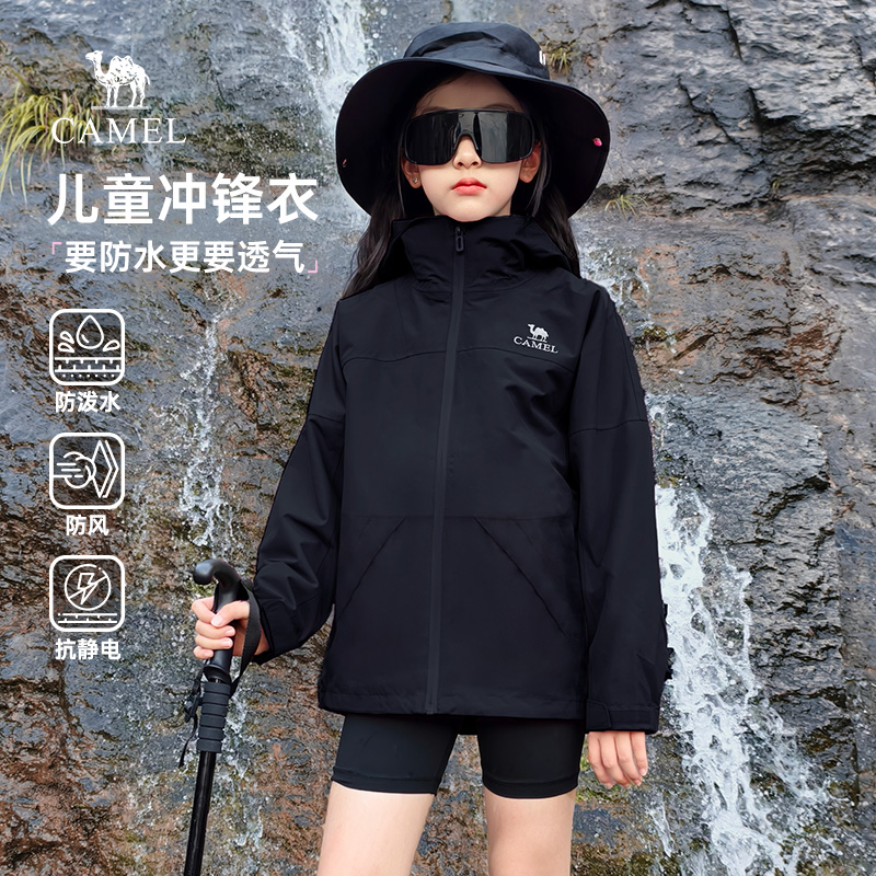 骆驼儿童冲锋衣三合一防风防水登山服中大童滑雪服女童三防外套男