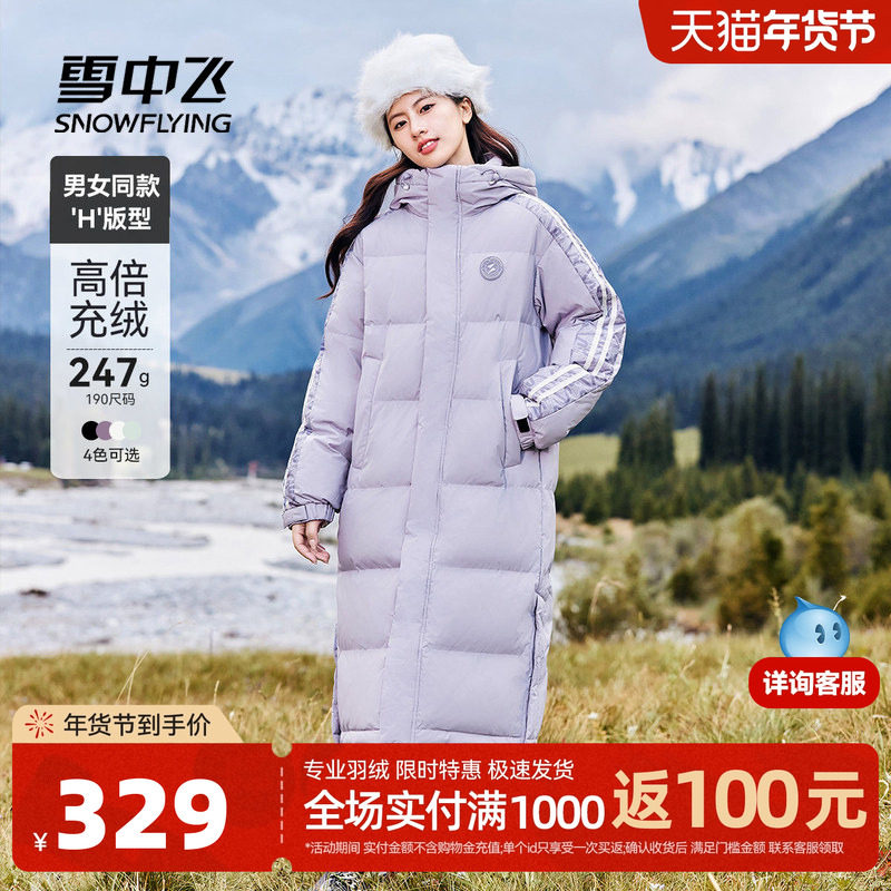 雪中飞秋冬大被子高峰滑雪冬新户外高充绒长款男女羽绒服学院运动