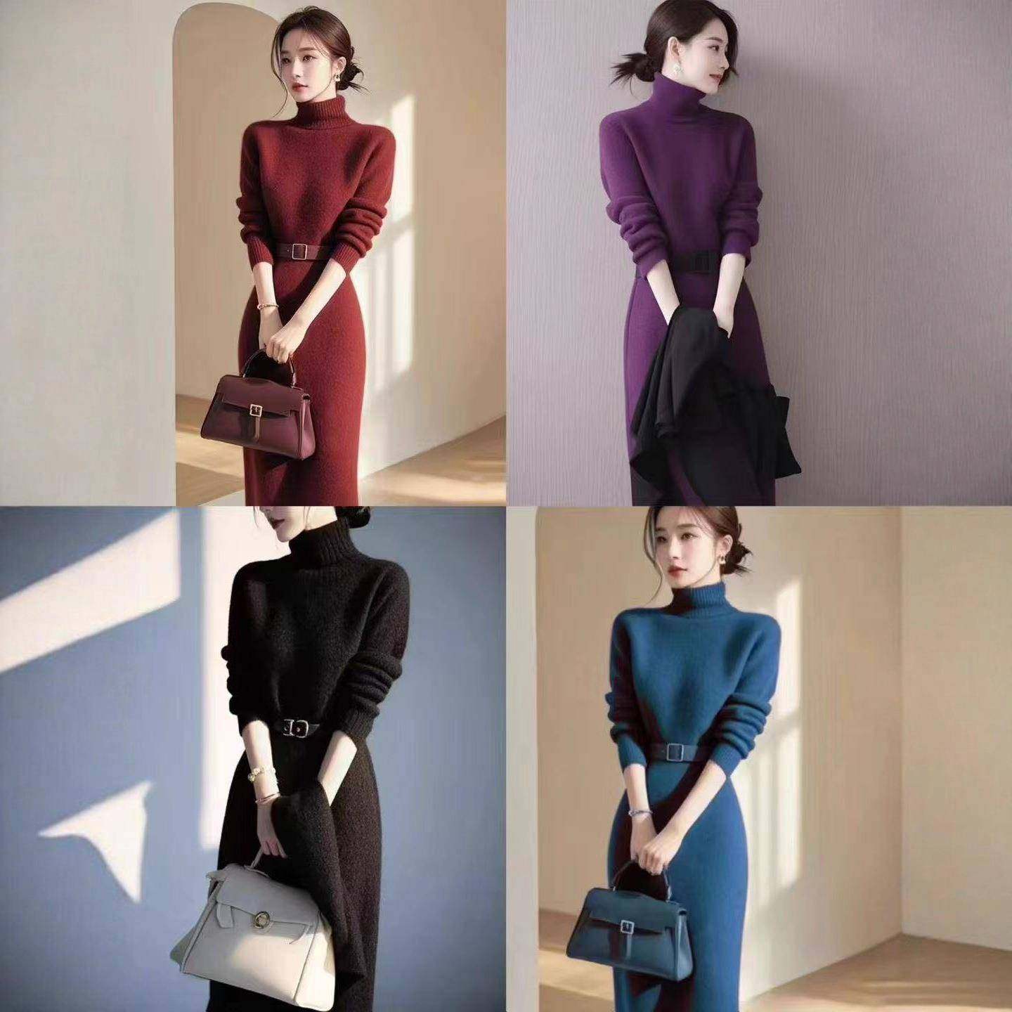 - 针织衫连衣裙包臀修身