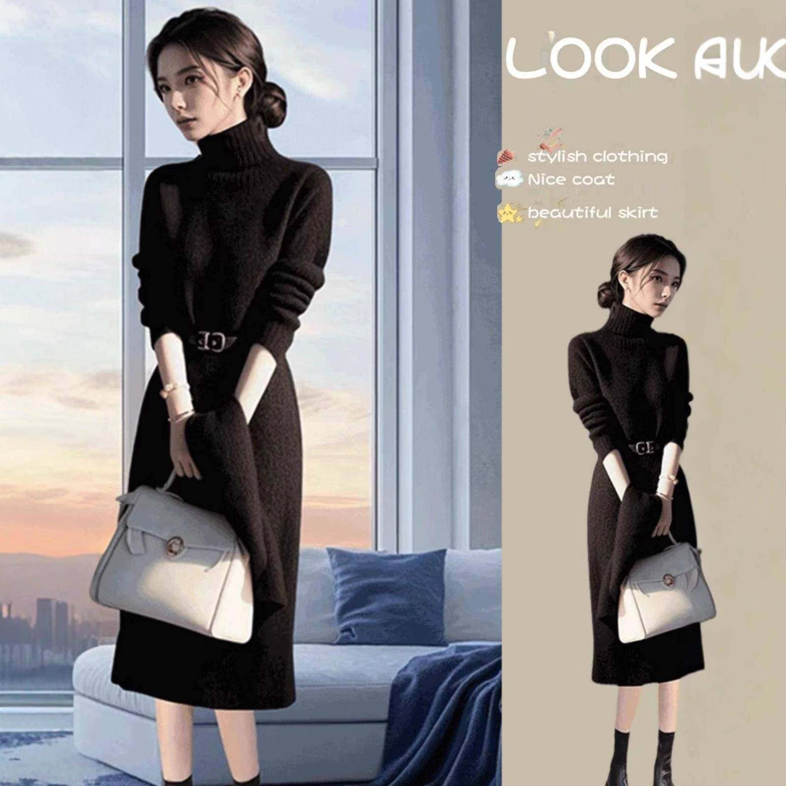- 毛衣宽松连衣裙中长款