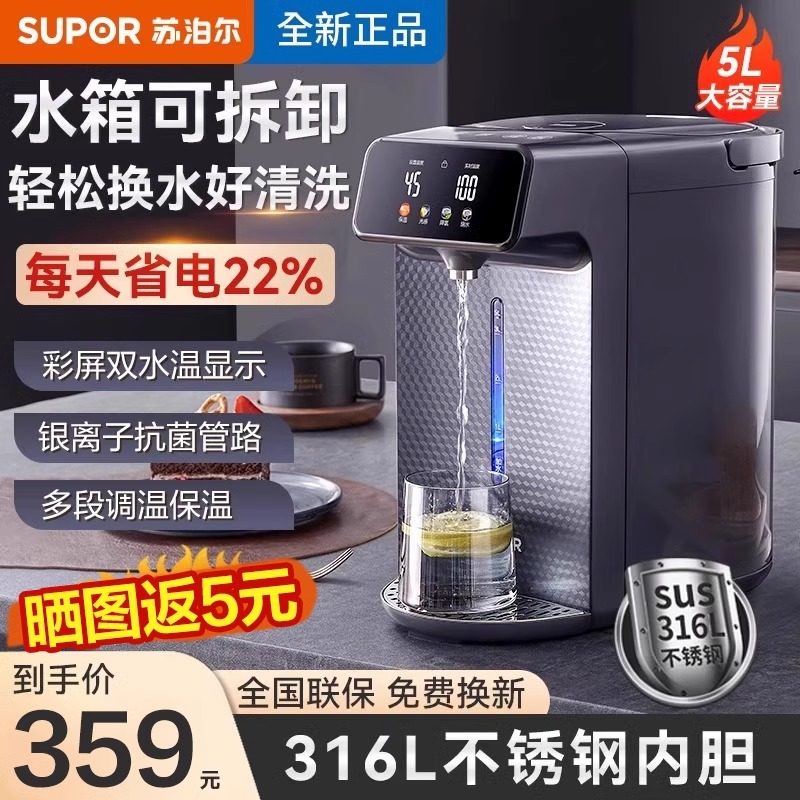 苏泊尔恒温热水壶家用5L智能烧水壶大容量电热水瓶保温一体全自动