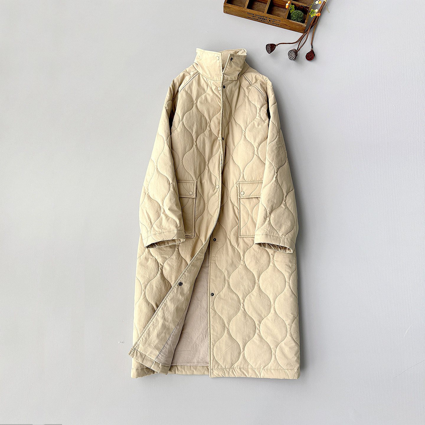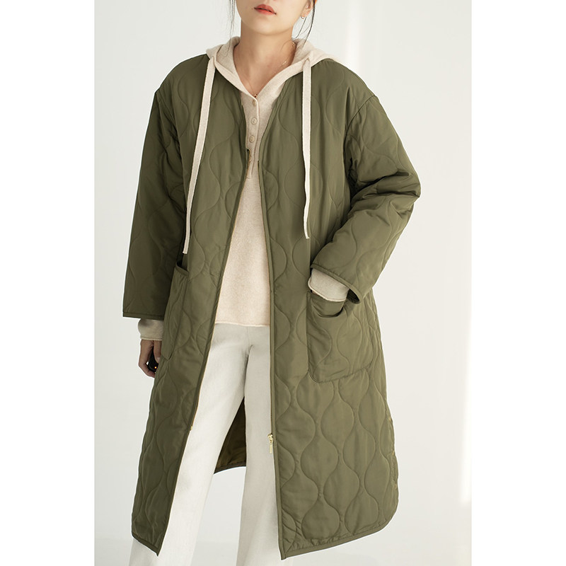 83582 女士绗缝夹棉连帽棉服 中长款加绒保暖棉衣 开衫外套 女装