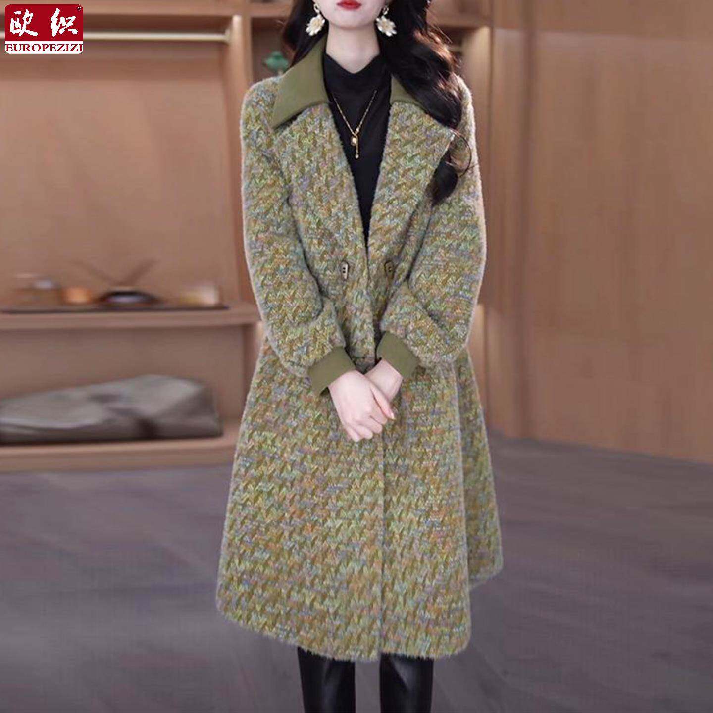中老年妈妈秋冬洋气毛呢外套中长款2025新款女士貂绒夹棉加厚大衣