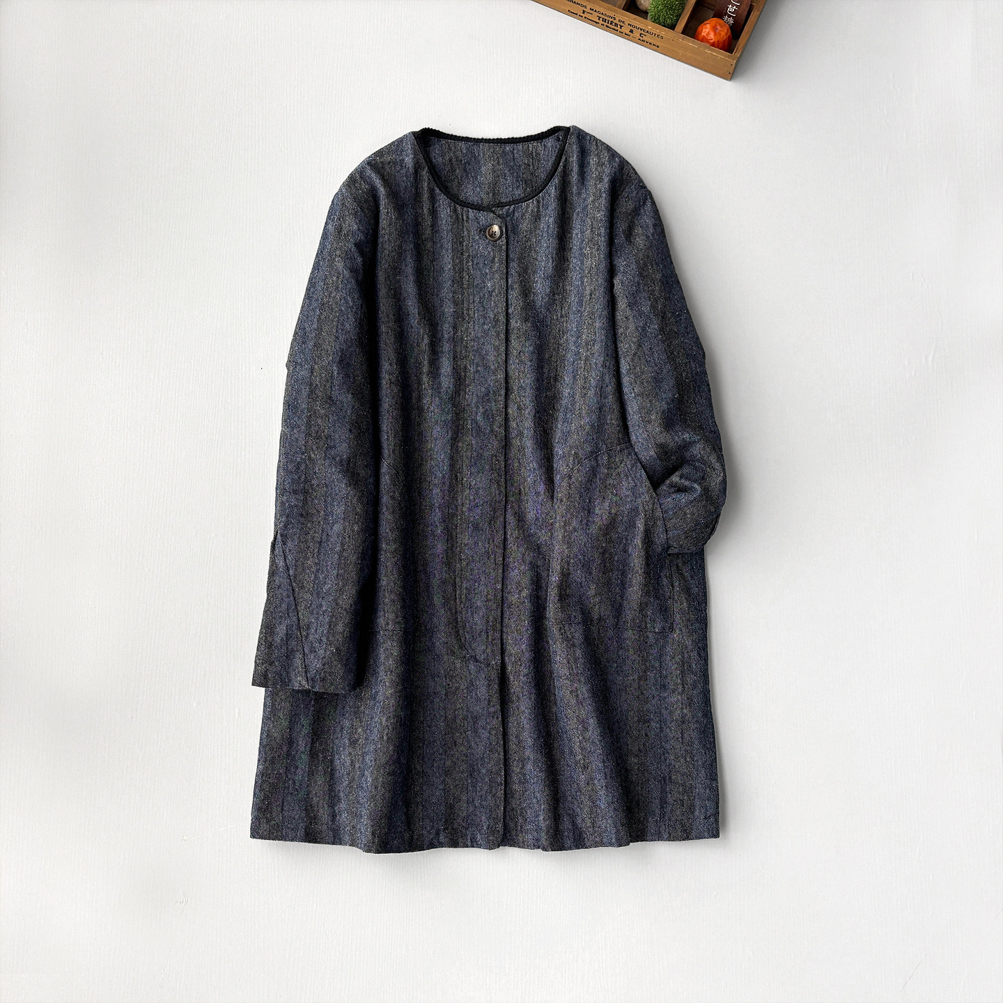 冬季长款夹棉外套复古风棉麻中长宽松棉服女士老钱风棉麻棉衣棉袄