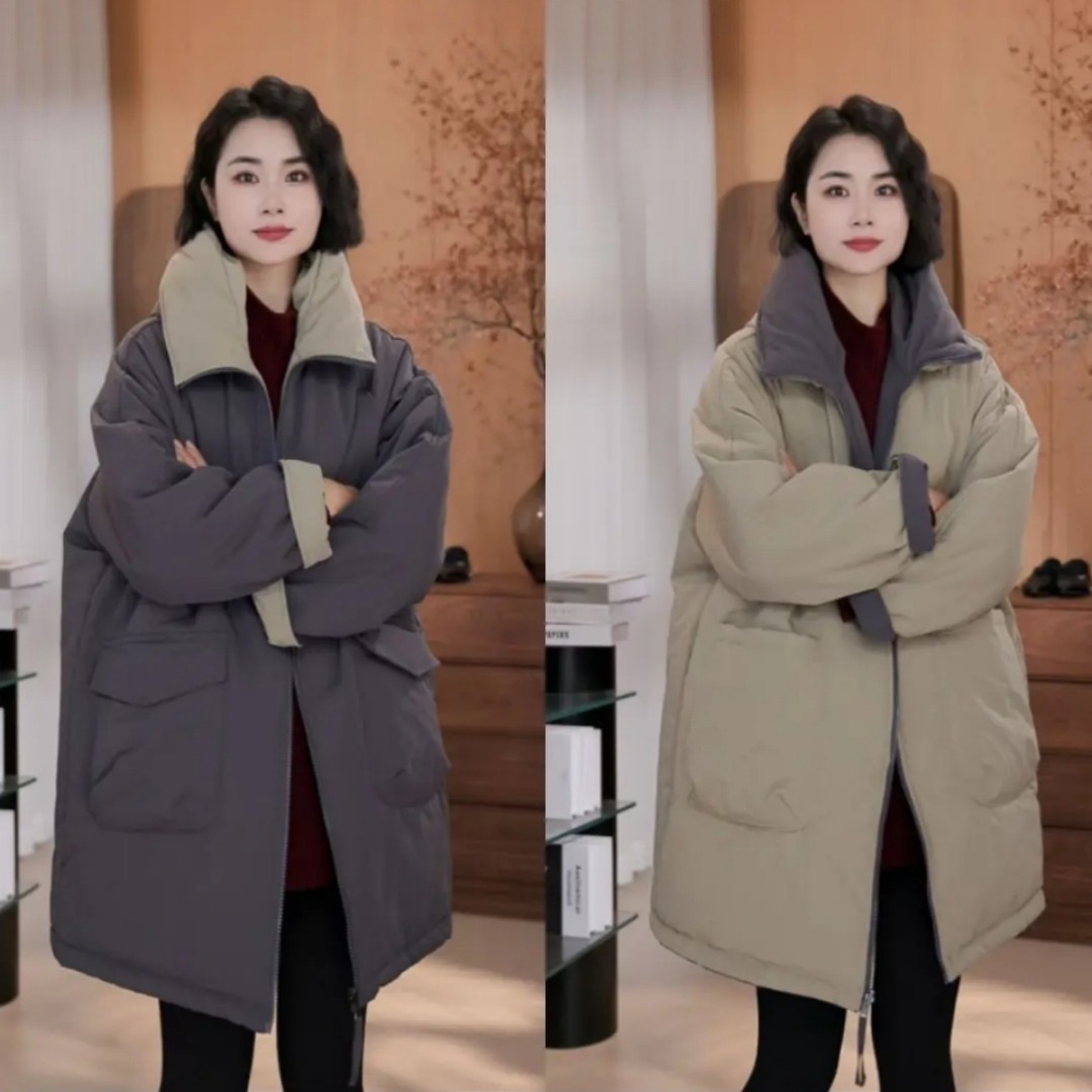 2025冬款连帽棉衣正反两穿宽松百搭中长款女款厚女士夹棉外套