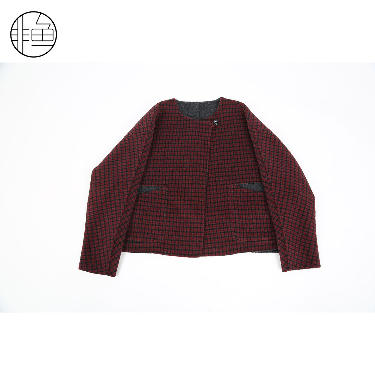 soolrok 松未韵一 正反两穿双面呢格纹羊毛大衣宽松外套上衣围巾