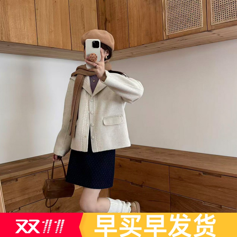 新款双面羊绒大衣小个子娃娃领女装短款双面羊毛大衣宽松毛呢外套