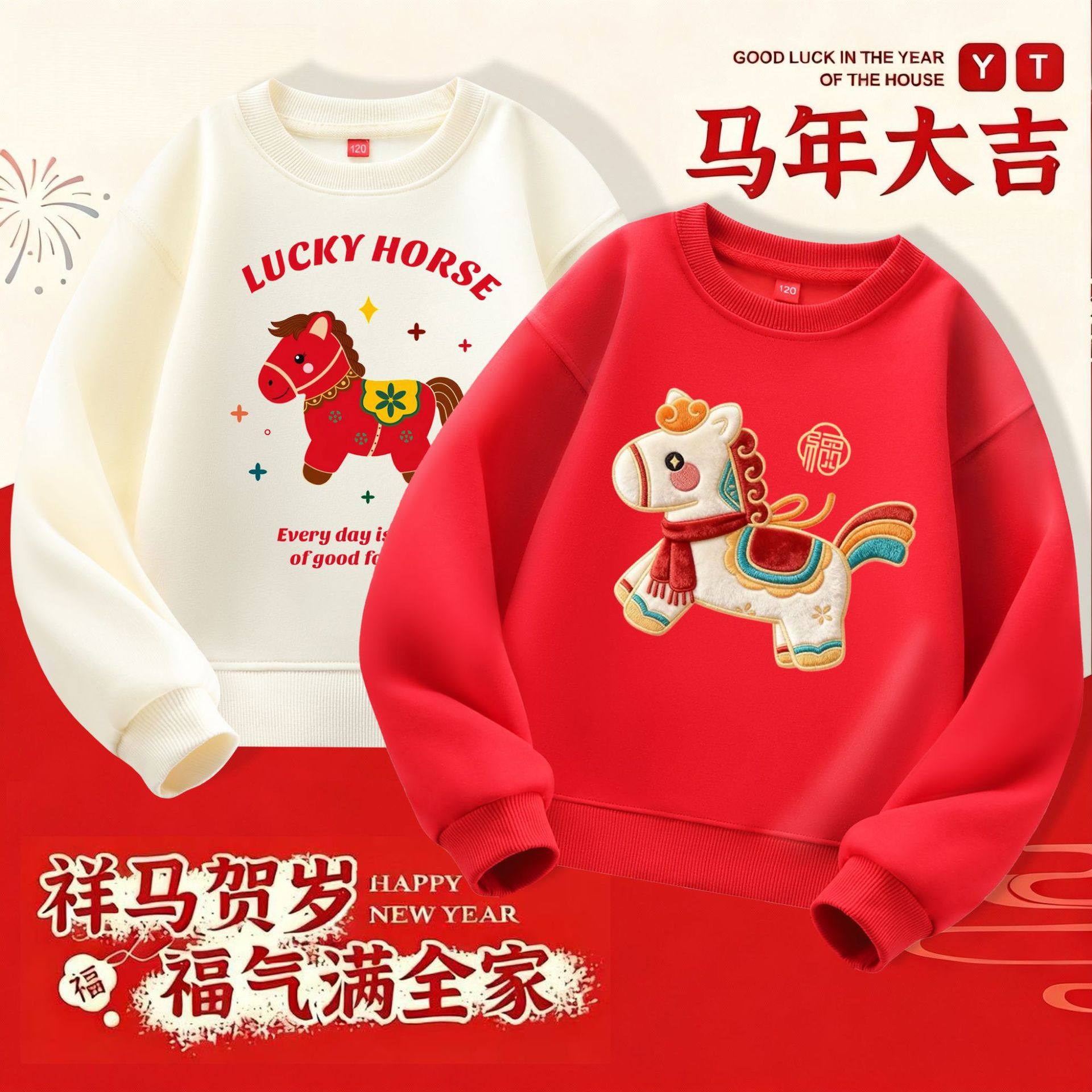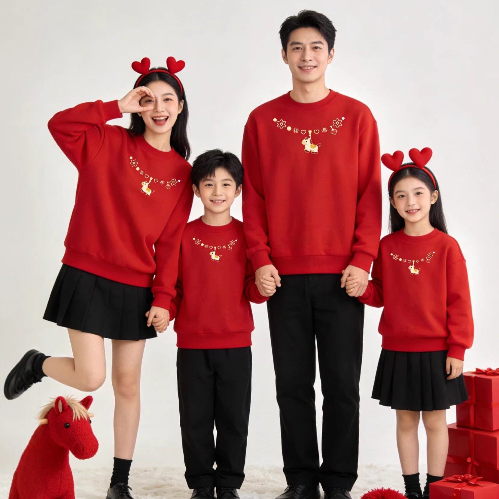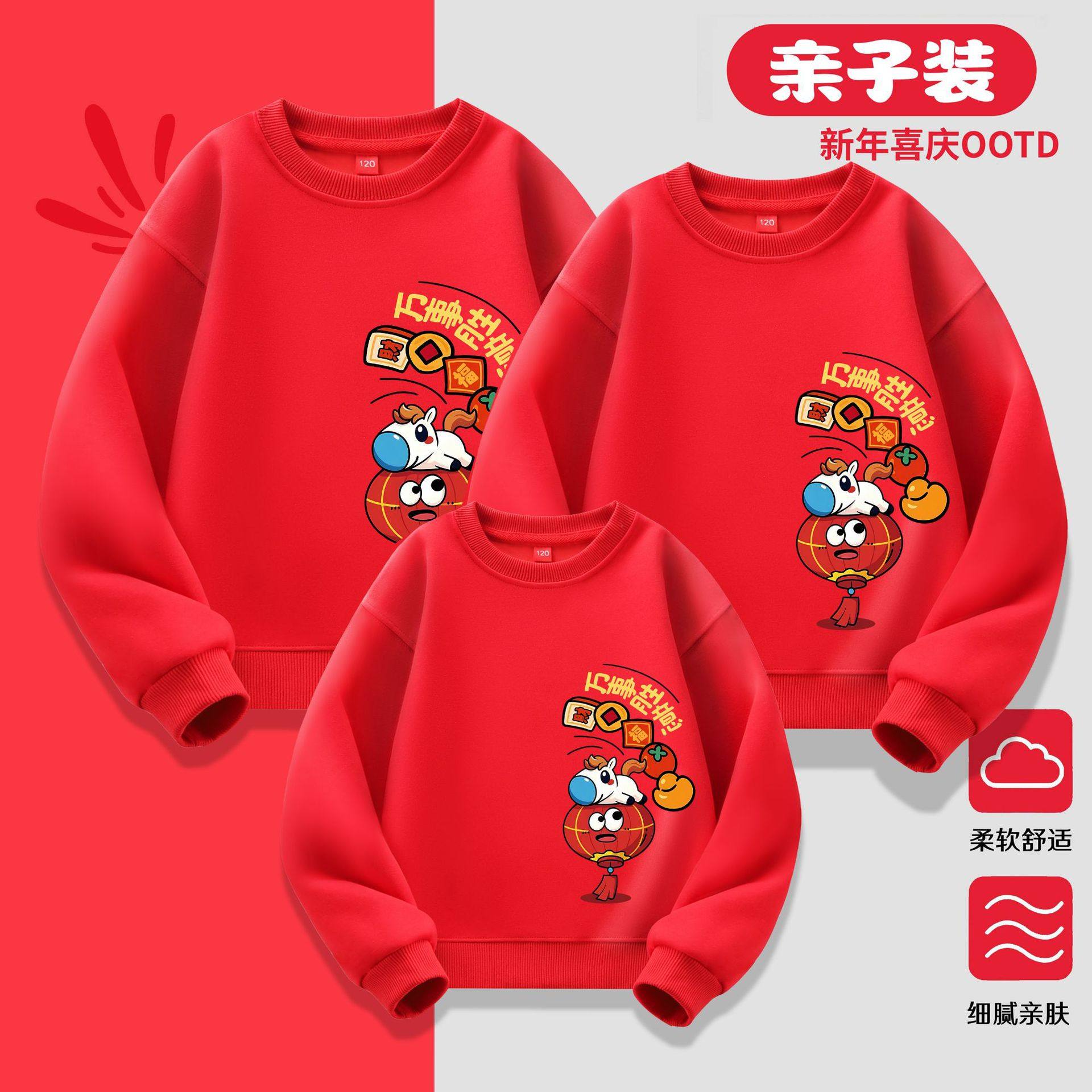热卖马年亲子装2026本命年红色喜庆卫衣跨年活动全家福上衣加绒款