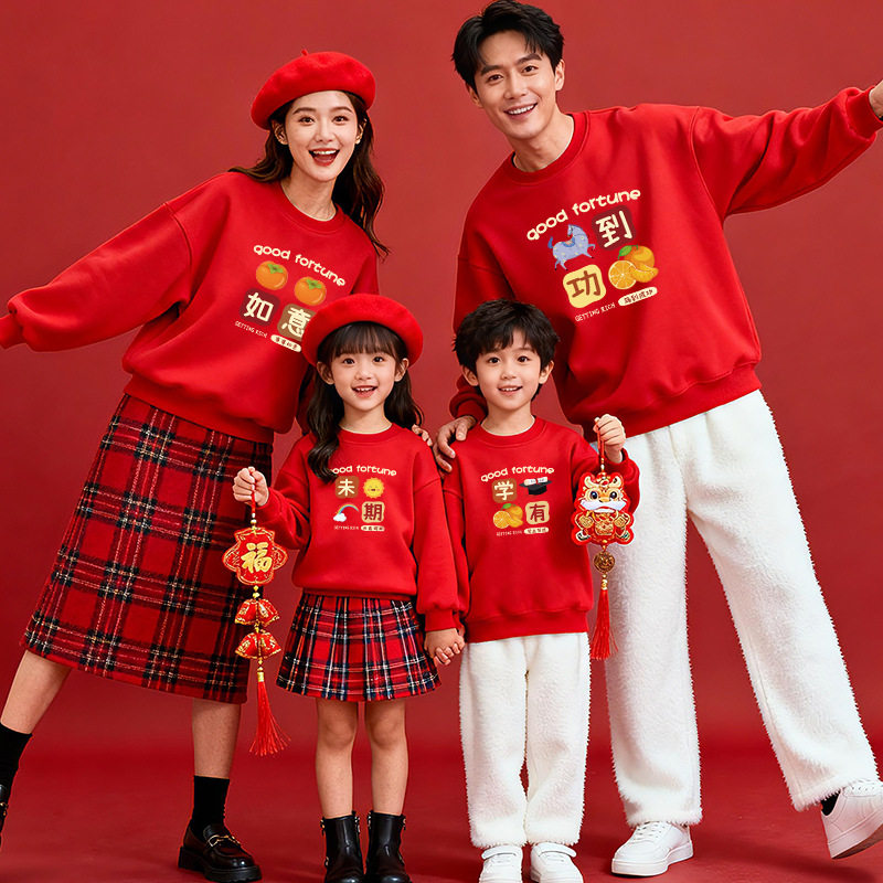 新年亲子装一家三口秋冬高端卫衣2025新款四口母子婴儿过年拜年服