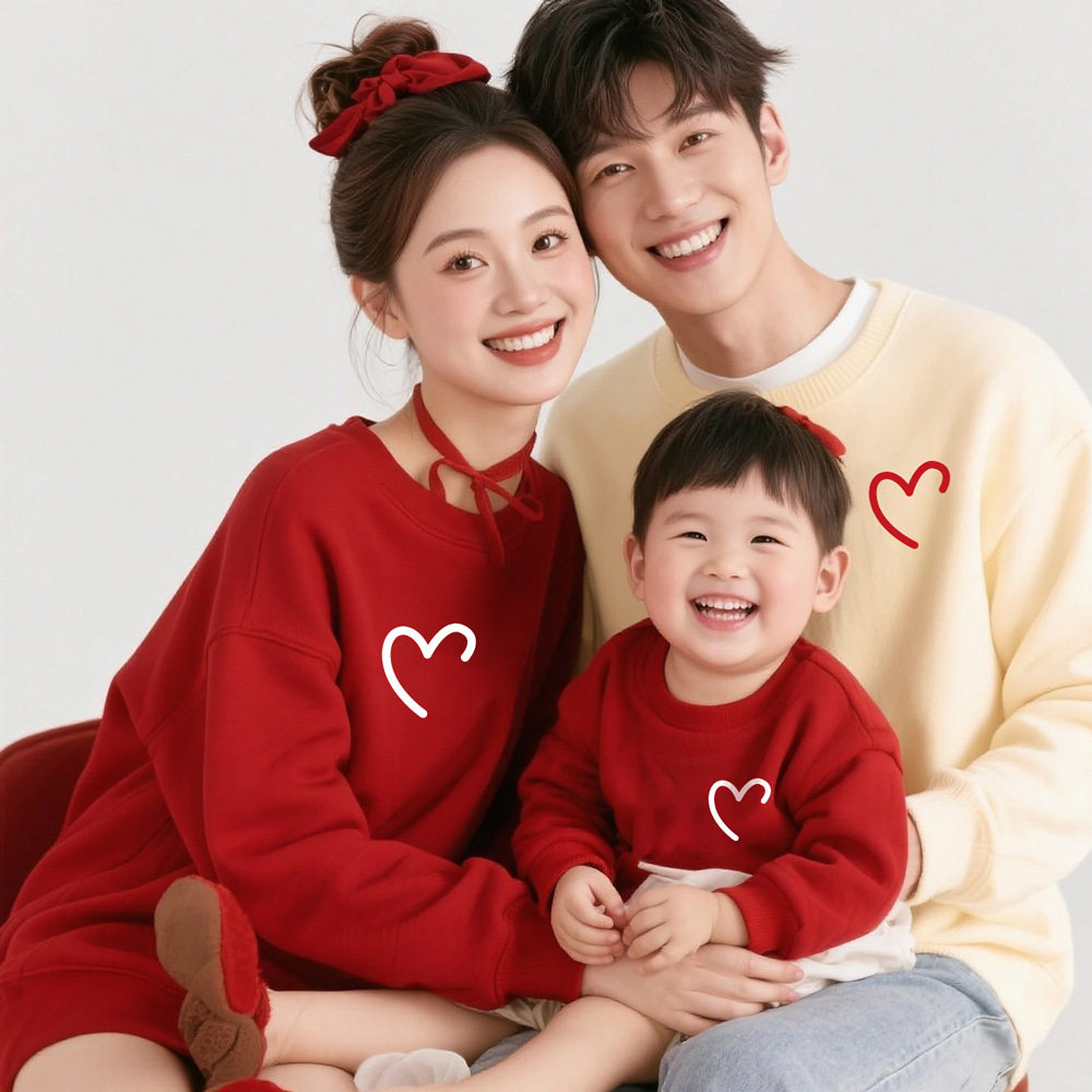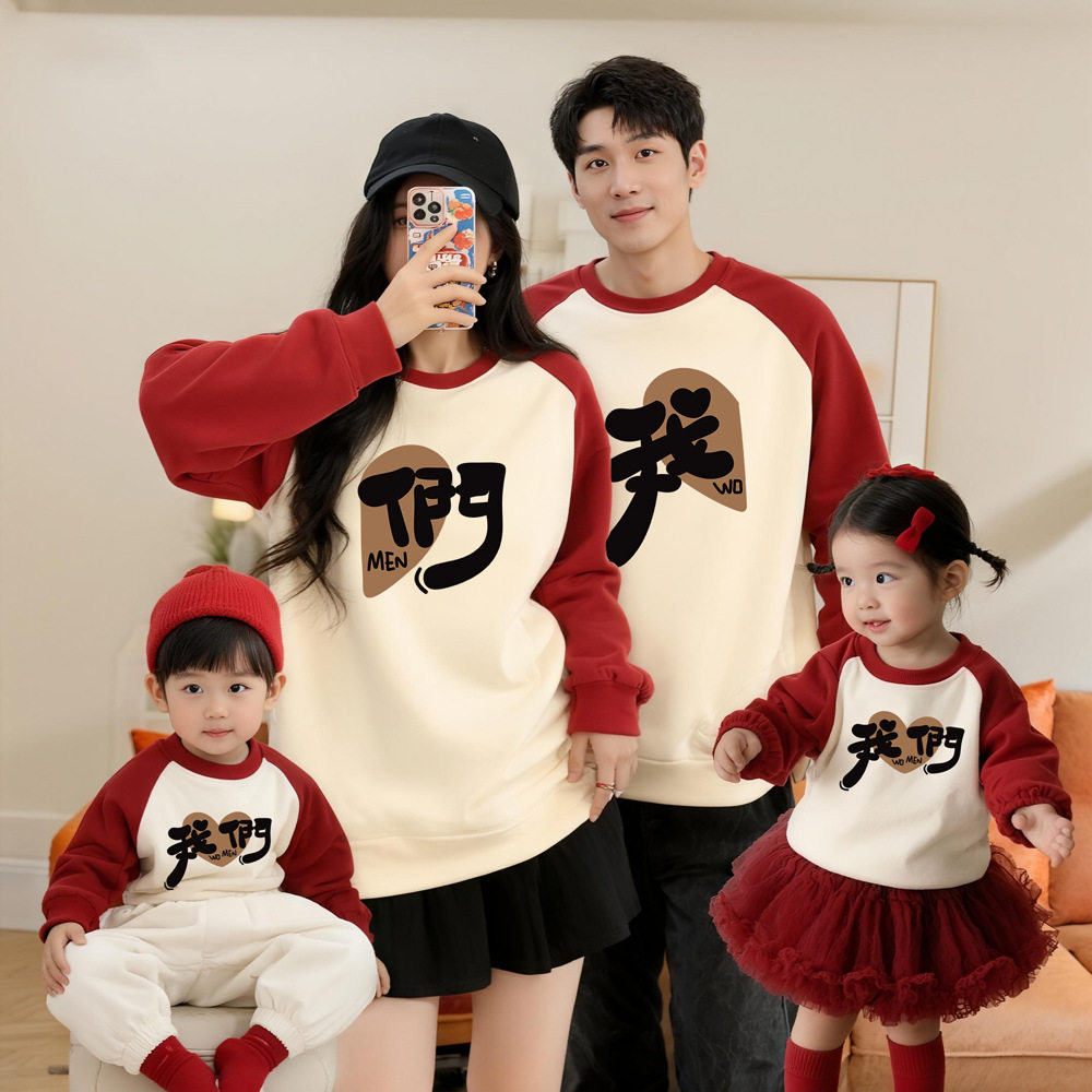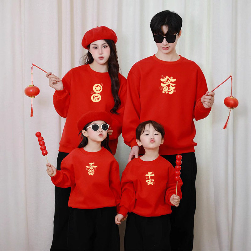 过年服亲子卫衣一家三口四口婴儿满月周岁全家福拍照洋气母女母子