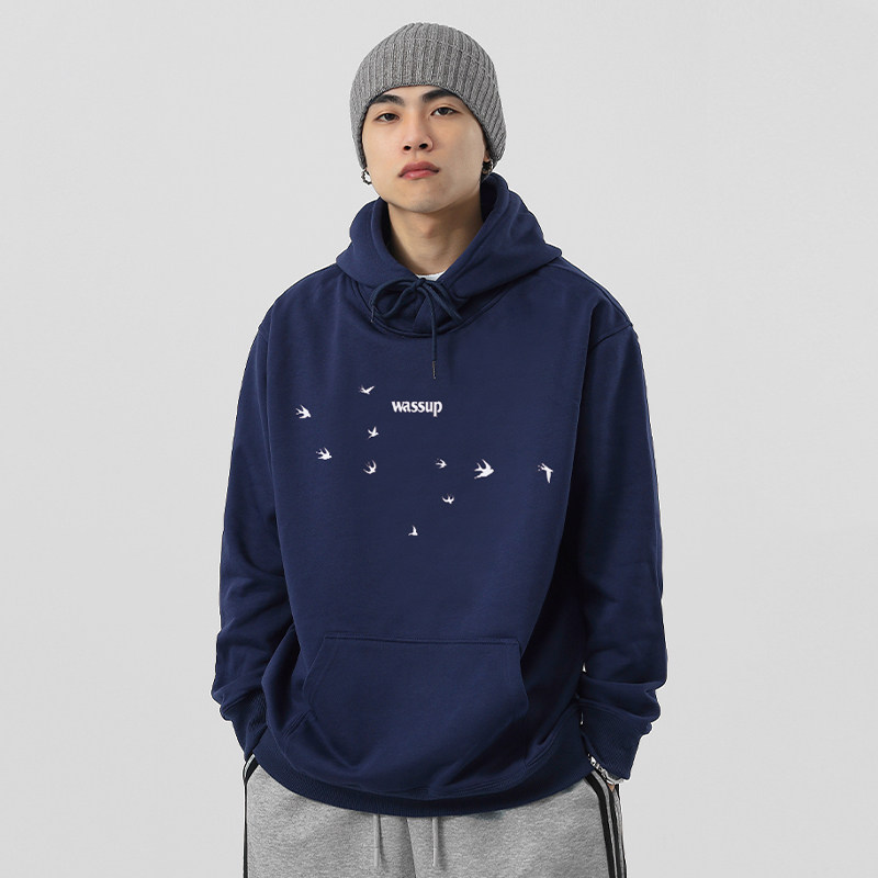WASSUP国潮吉祥燕子连帽卫衣女2026新款春秋冬小众宽松纯棉情侣装
