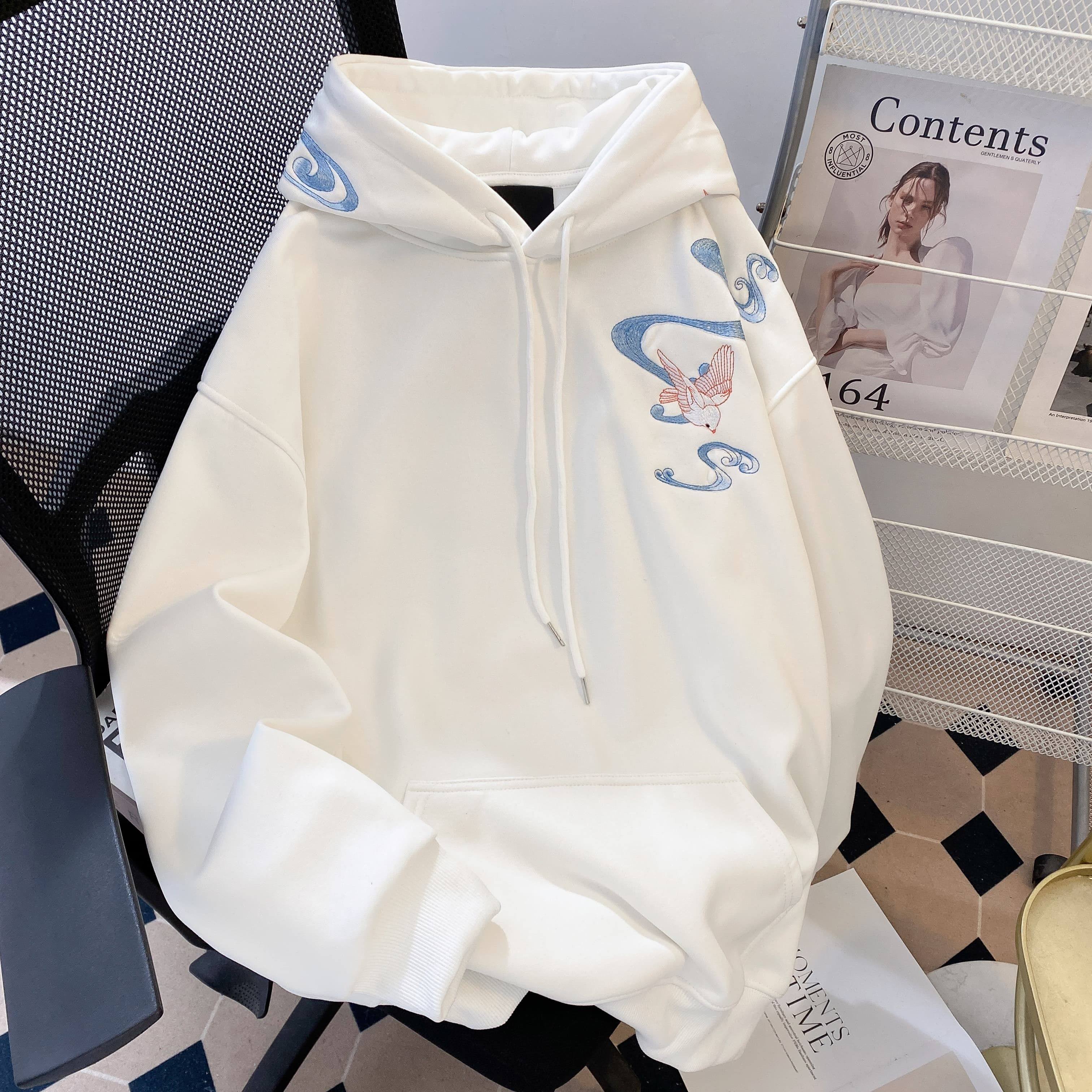 HA8EST美式重磅燕子刺绣连帽卫衣冬季新款潮流设计感情侣同款外套