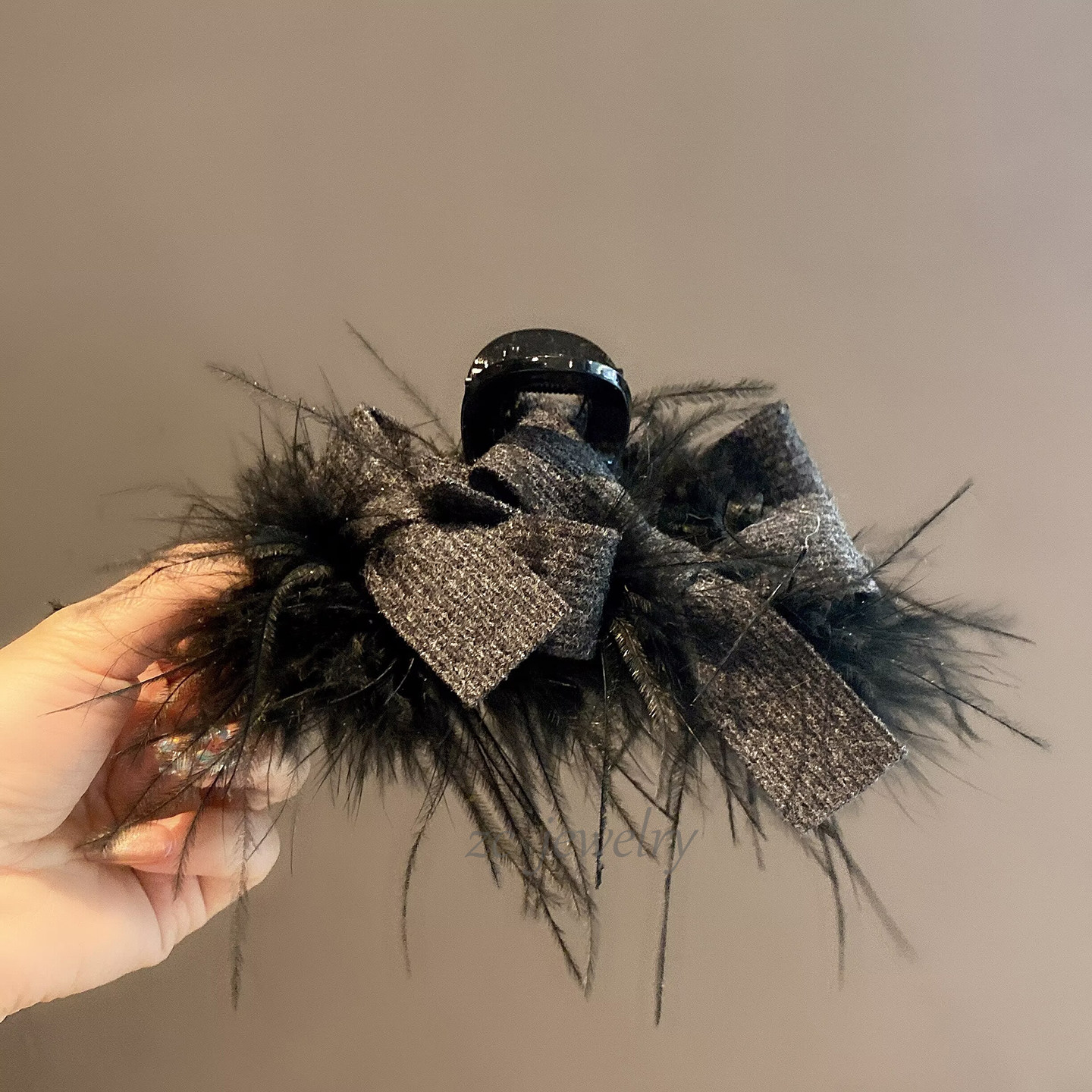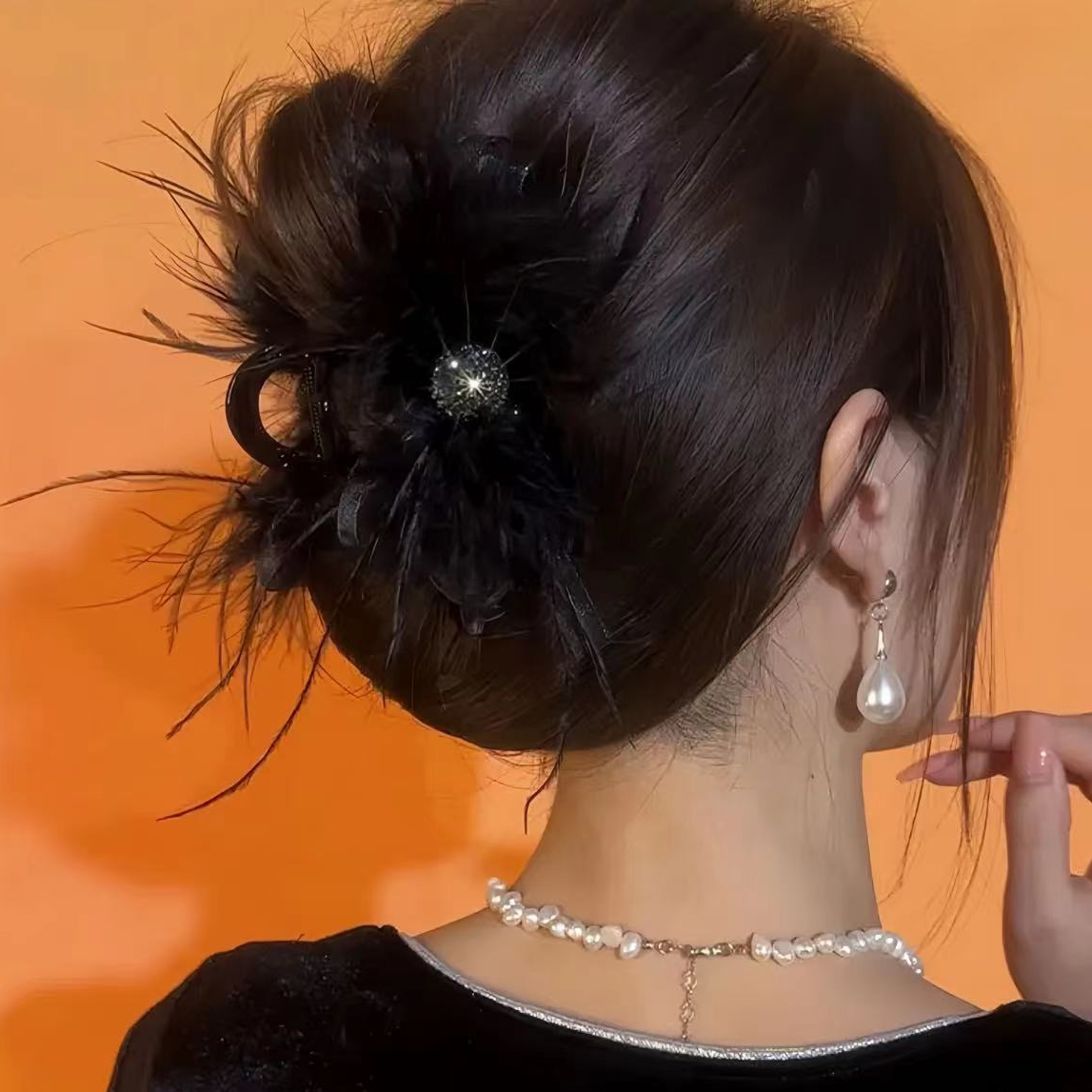 羽毛抓夹女2025新款高级感鸵鸟毛发夹后脑勺鲨鱼夹秋冬款夹子头饰