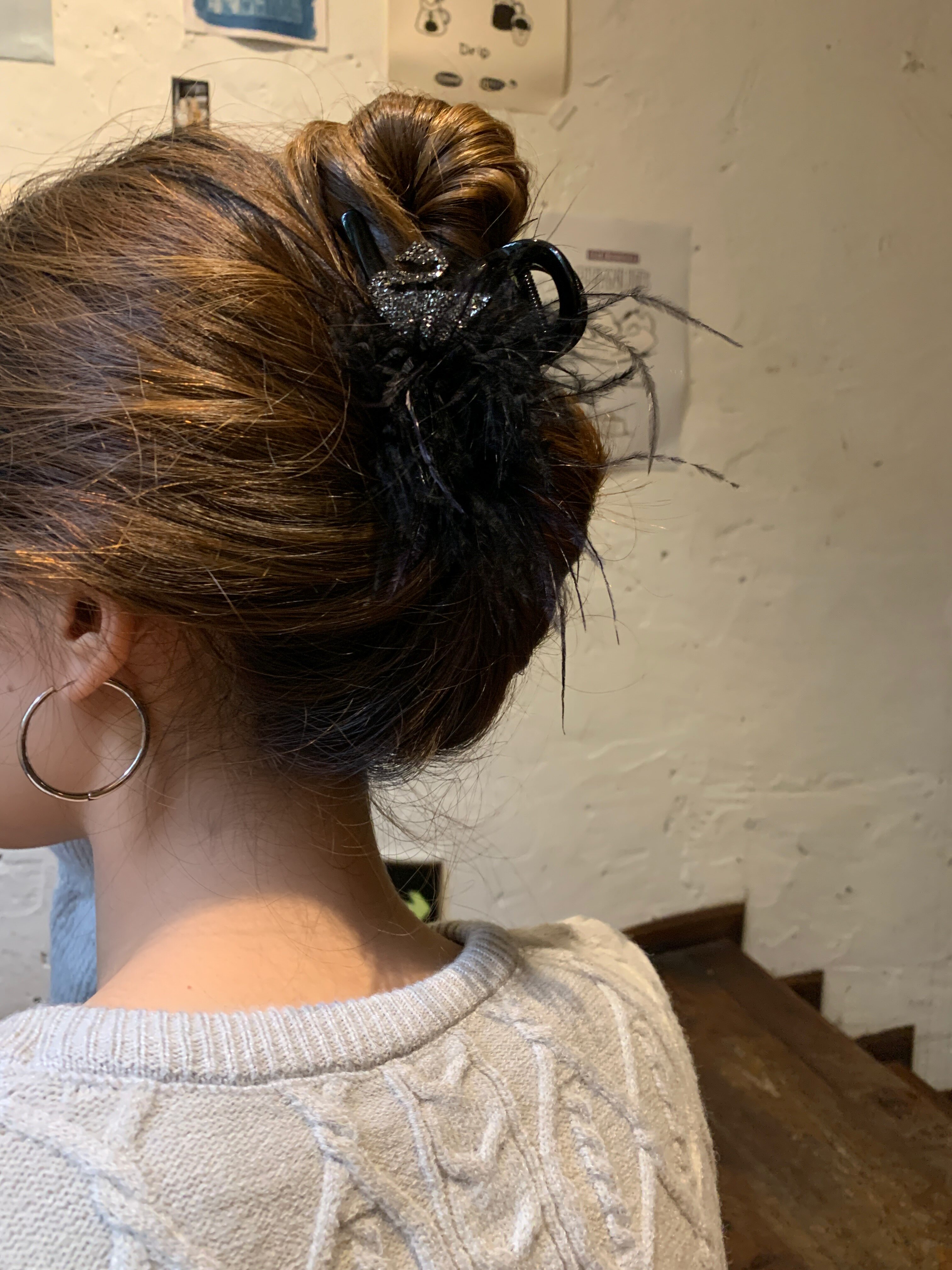 高级感时尚灰色蝴蝶结羽毛抓夹女氛围感后脑勺显发量气质发卡发饰