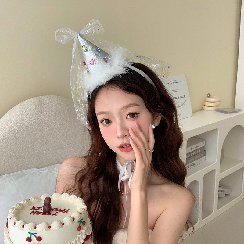 蝴蝶结头纱生日帽羽毛绑带帽子送女友拍照氛围甜美公主饰品发饰女