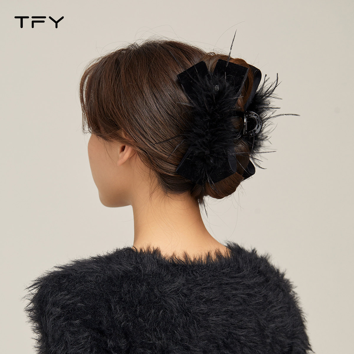 弗弗西FFX鸵鸟毛仙气发饰女[夏花]羽毛抓夹大号发量大发抓发量少