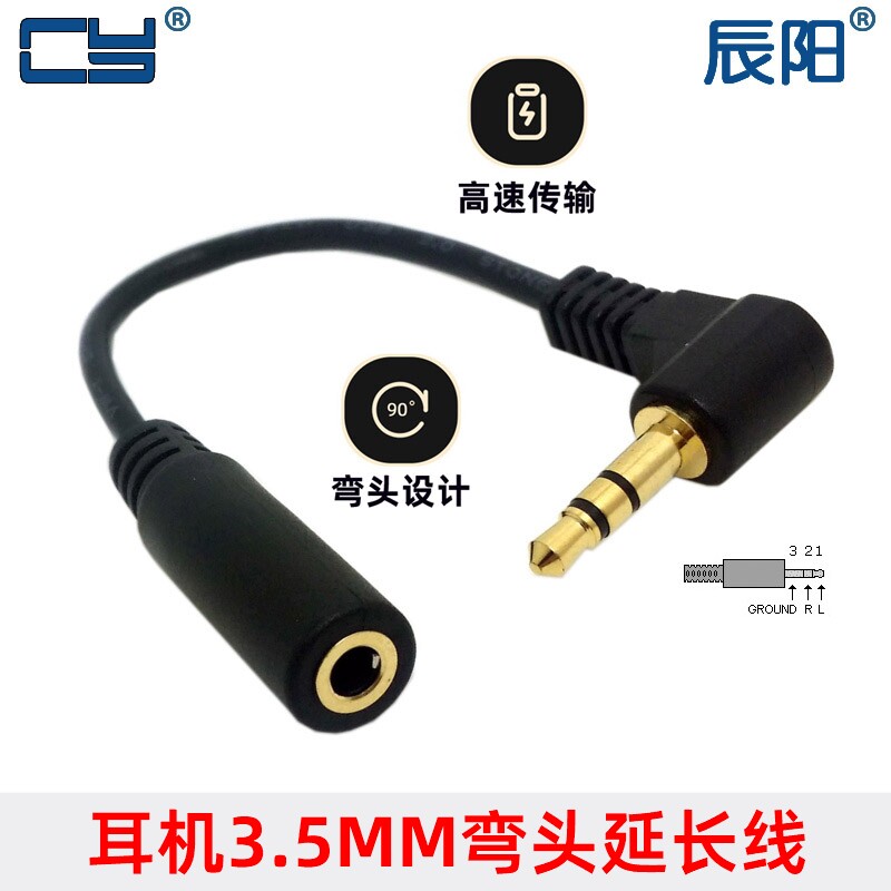 CY音箱延长线 90度弯头三极3.5mm公对母 耳机延长线 音频线 音频延长线 转接线小三芯3.5mm连接线AUX车载