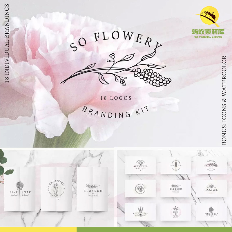 手绘精致咖啡花店草植物简约LOGO标志品牌图标案ps设计素材AI矢量