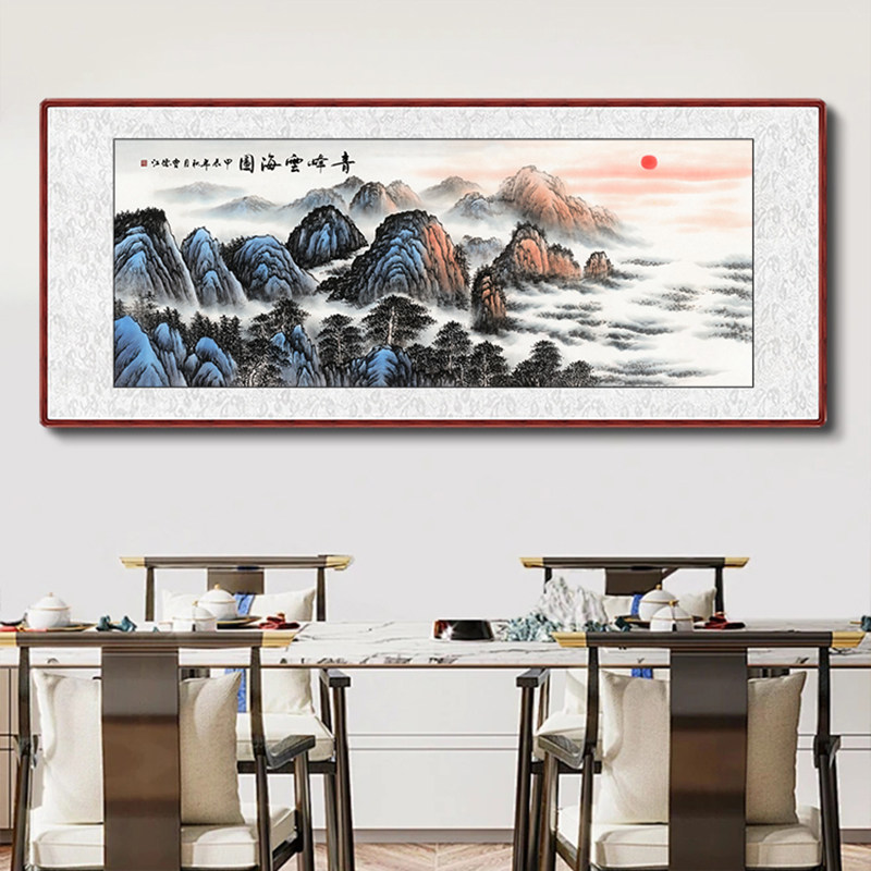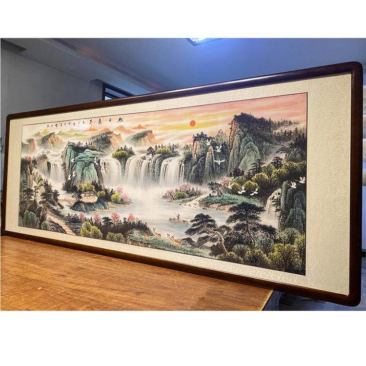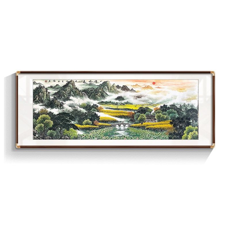 旭日东升横幅纯手绘山水画 客厅背景墙装饰挂画办公室国画靠山图
