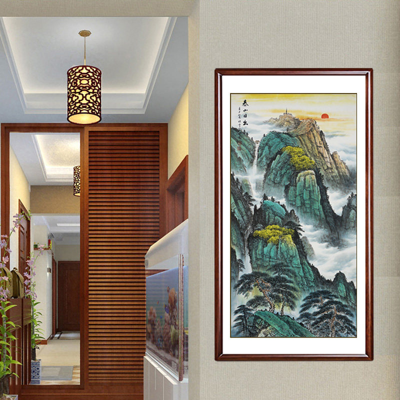 玄关画竖版字画楼梯间玄关带框国画办公室客厅手绘山水画走廊挂画