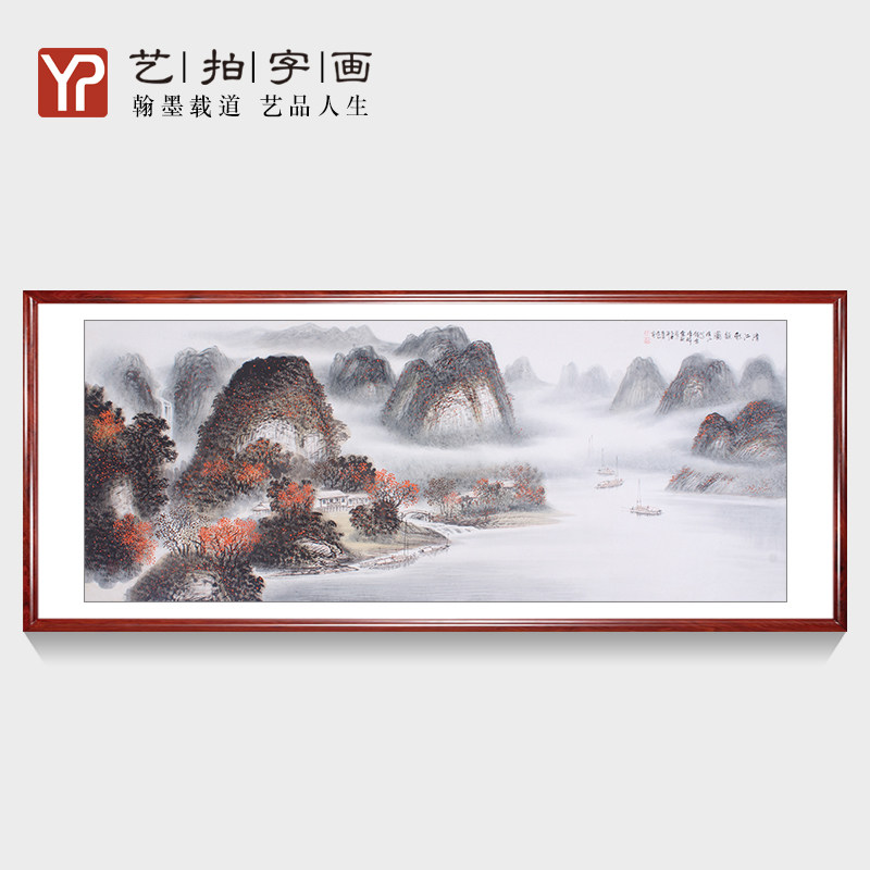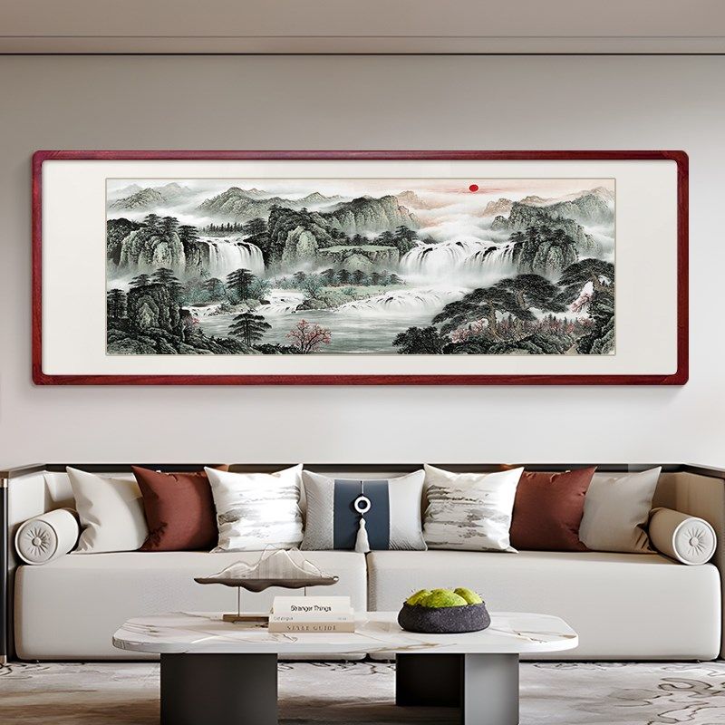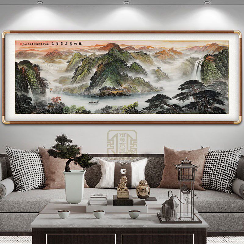 鸿运千秋横幅纯手绘山水画 客厅背景墙装饰挂画办公室国画靠山图