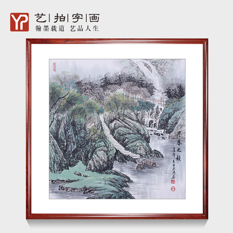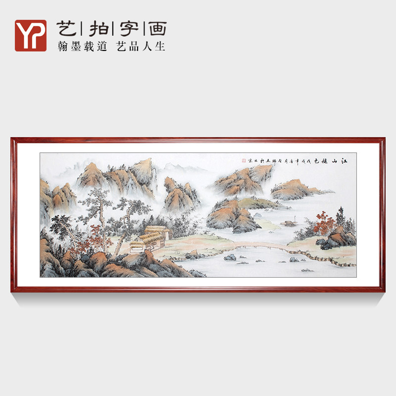 宋代美学纯手绘山水画新中式玄关带框传统山水画框装饰画酒店大堂