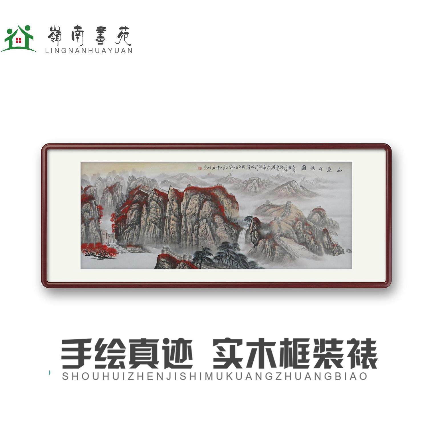 手绘万里长城靠山图 办公室装饰画 新中式客厅国画山水画带框包邮