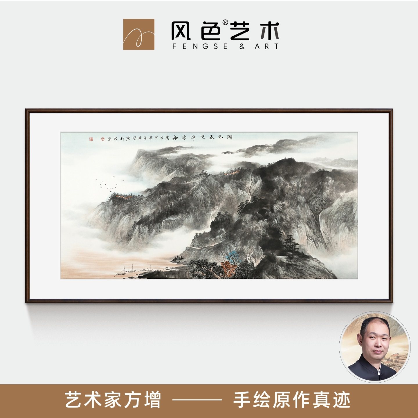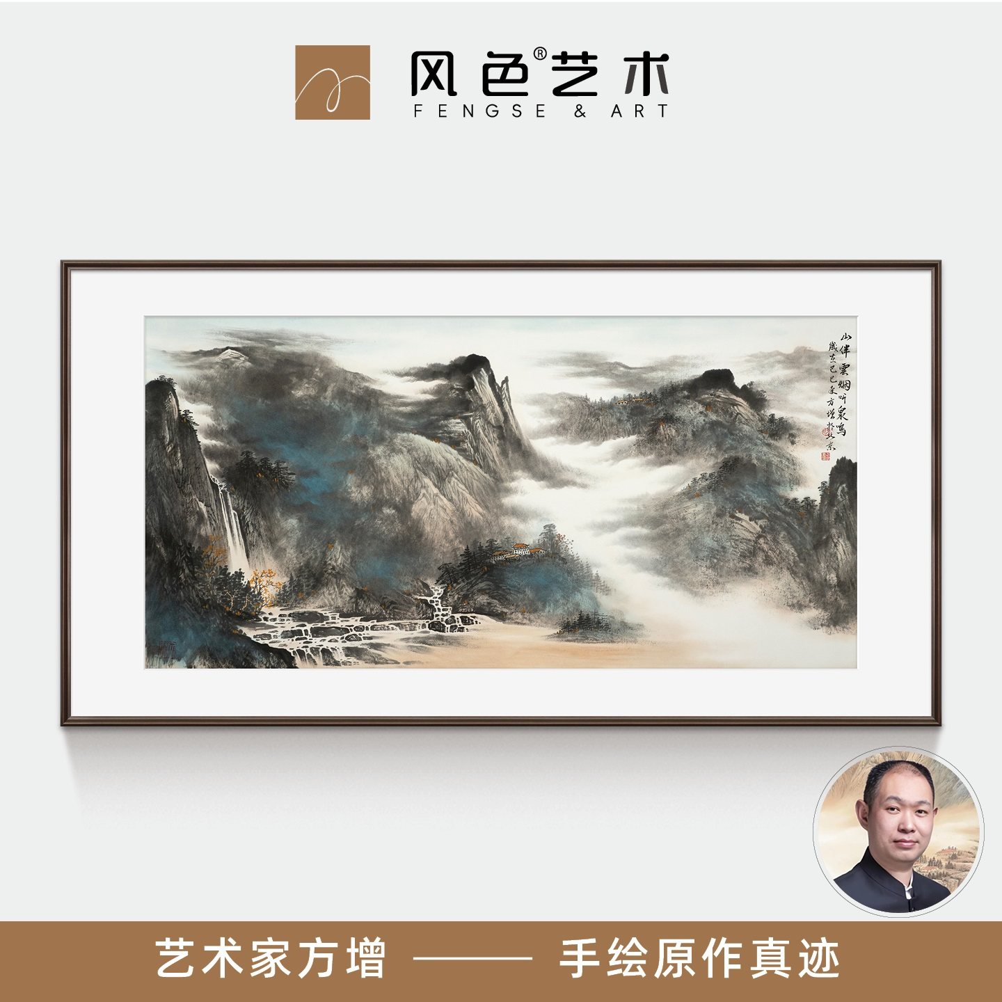 风色客厅装饰画方增手绘山水画背景墙挂画办公室原创国画山伴云烟